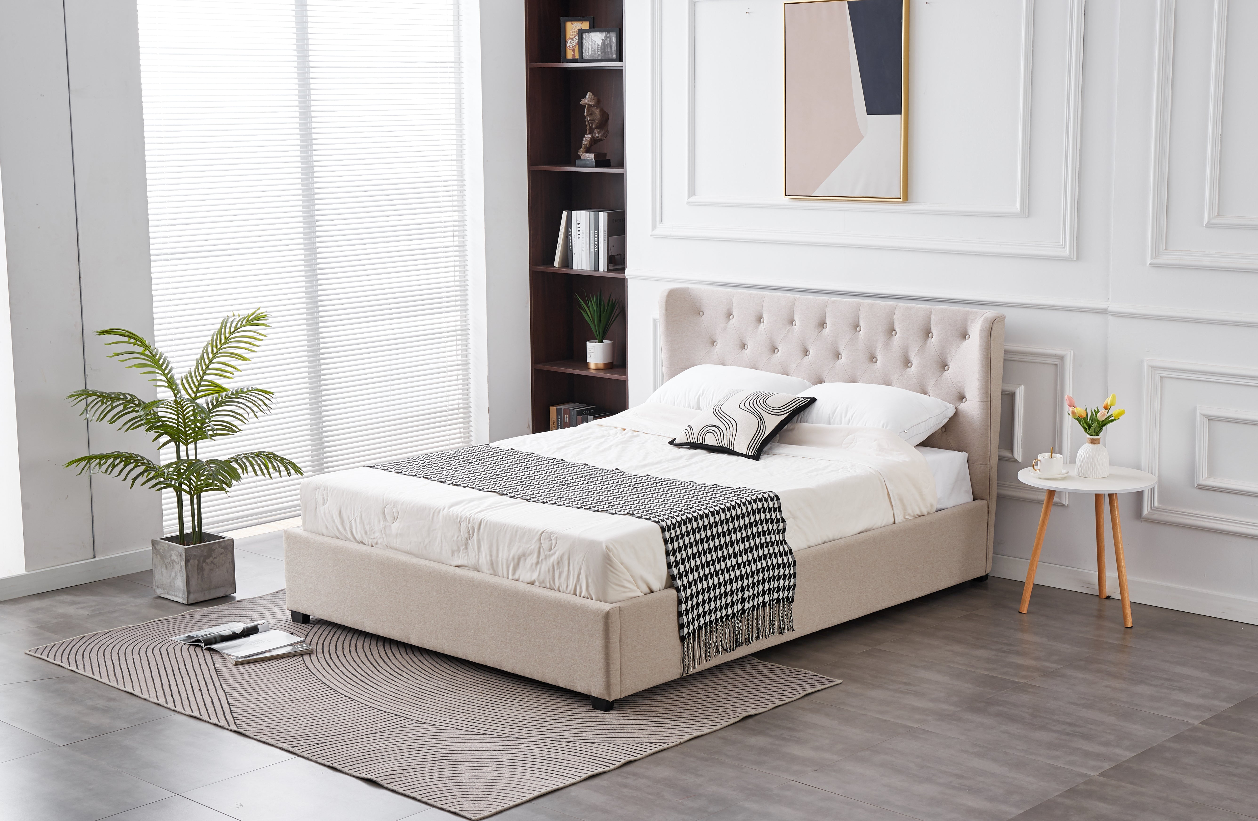 Cambridge Linen Tufted Bed - KING SIZE ONLY - Tan Beige