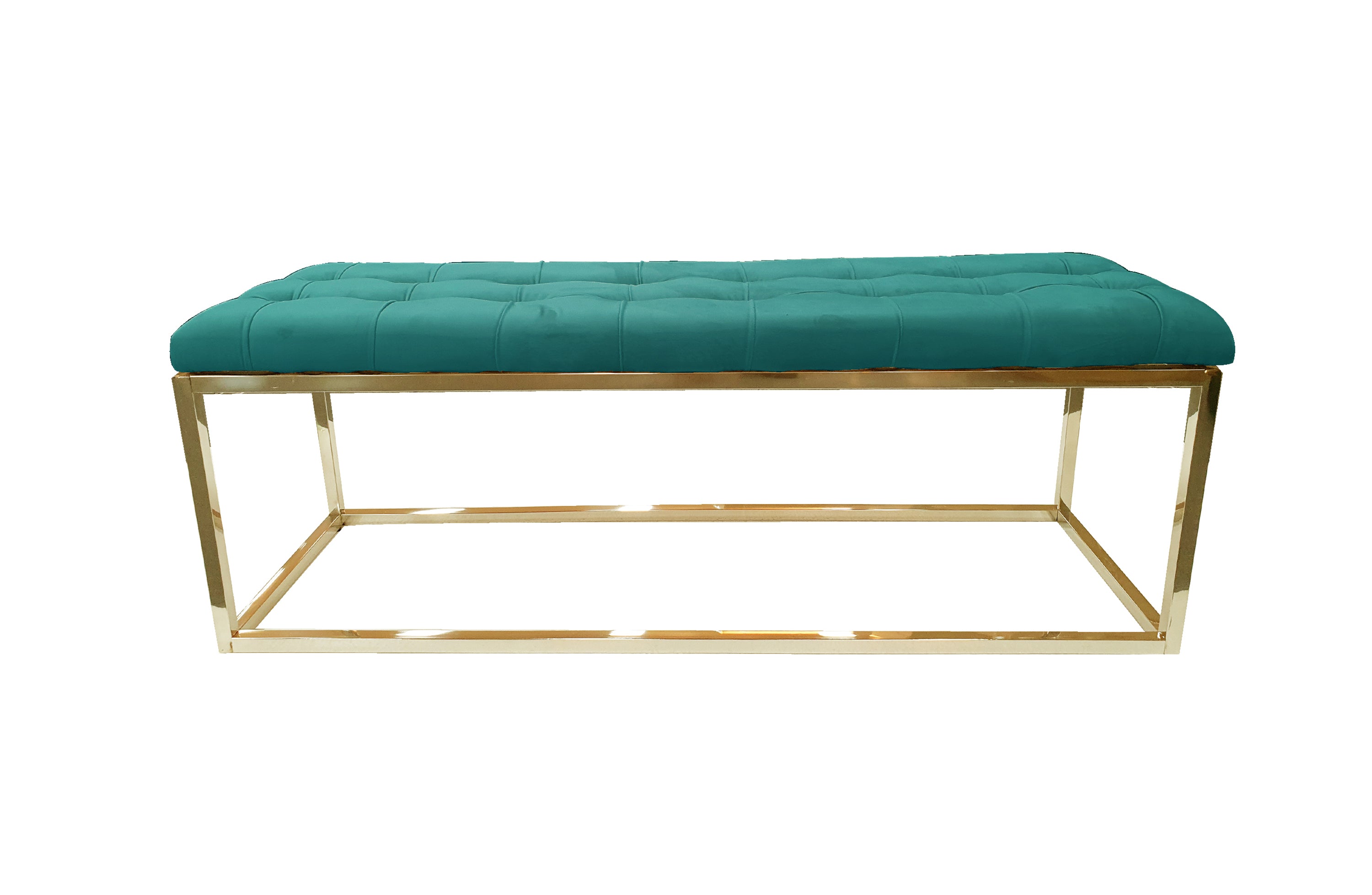 This ottoman features a striking gold frame that adds a touch of glamour and sophistication to any room. The frame is made of polished steel, ensuring durability and stability.