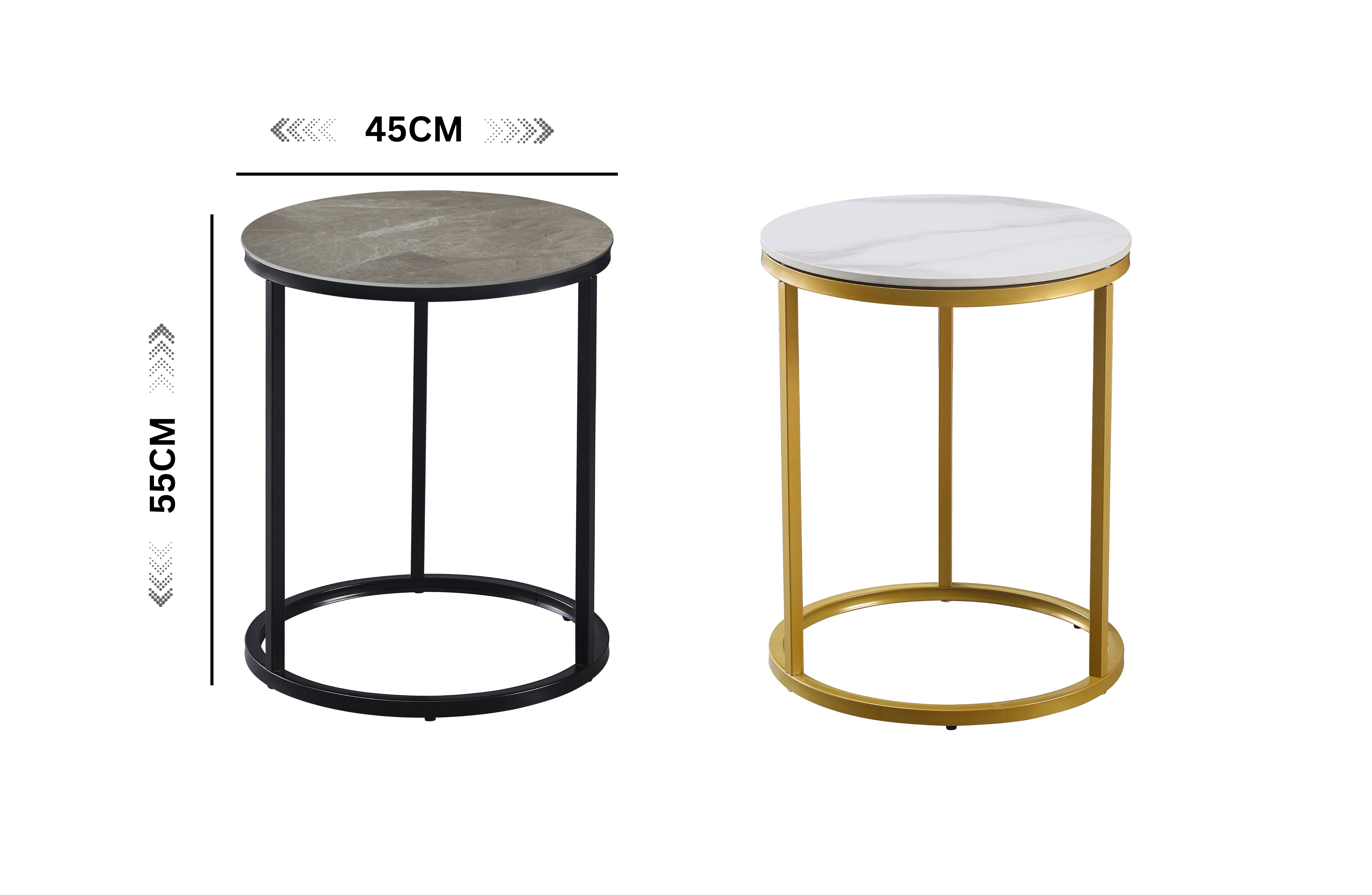 Add a touch of modern sophistication to your space with the Romana Side Table. Featuring a polished metal frame and a marble-finish stone top, this side table brings refined elegance to any living room, bedroom, or lounge area.