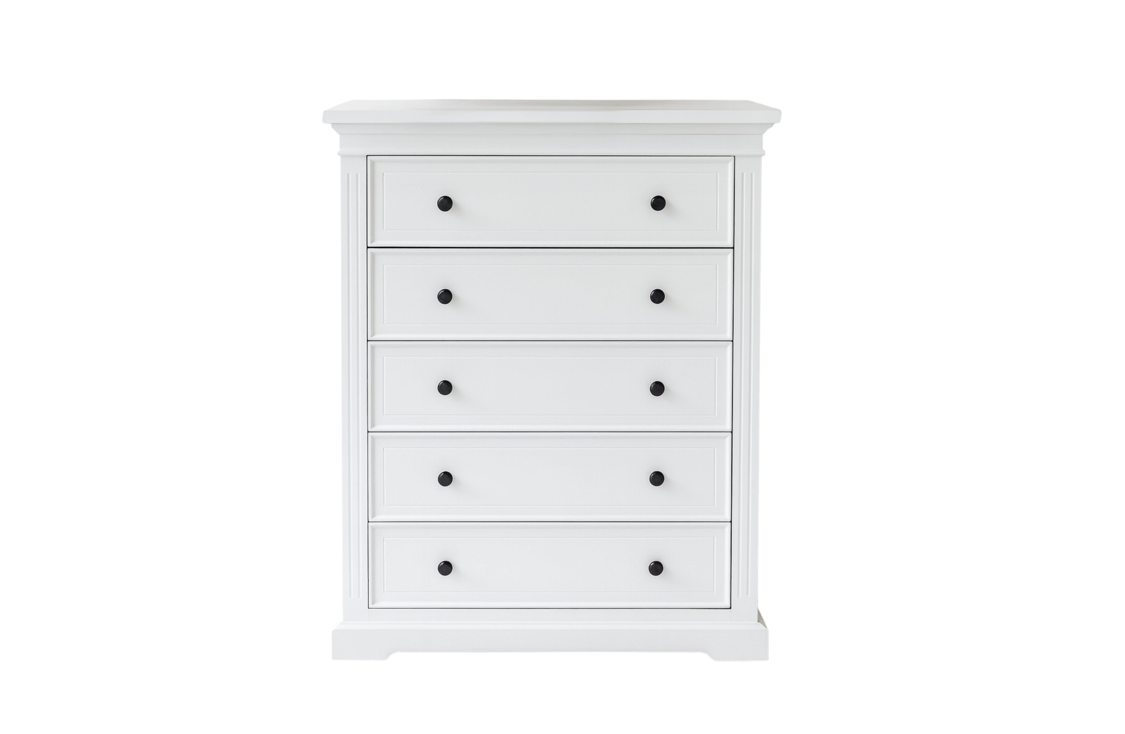 The tallboy features a crisp White finish, panelled detailing and generous vertical storage, making it a stylish and practical addition to your space. Its clean, classic silhouette blends seamlessly with a wide range of interior styles.