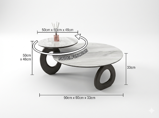 Introduce modern functionality and elegant design to your living space with the Cooper Swivel Set of 2 Marble Coffee Tables. This contemporary duo features a spacious main table paired with a versatile swivel side table that can be extended, angled, or tucked neatly underneath to suit your layout. Perfect for dynamic living rooms, the Cooper Set combines practicality with refined style.