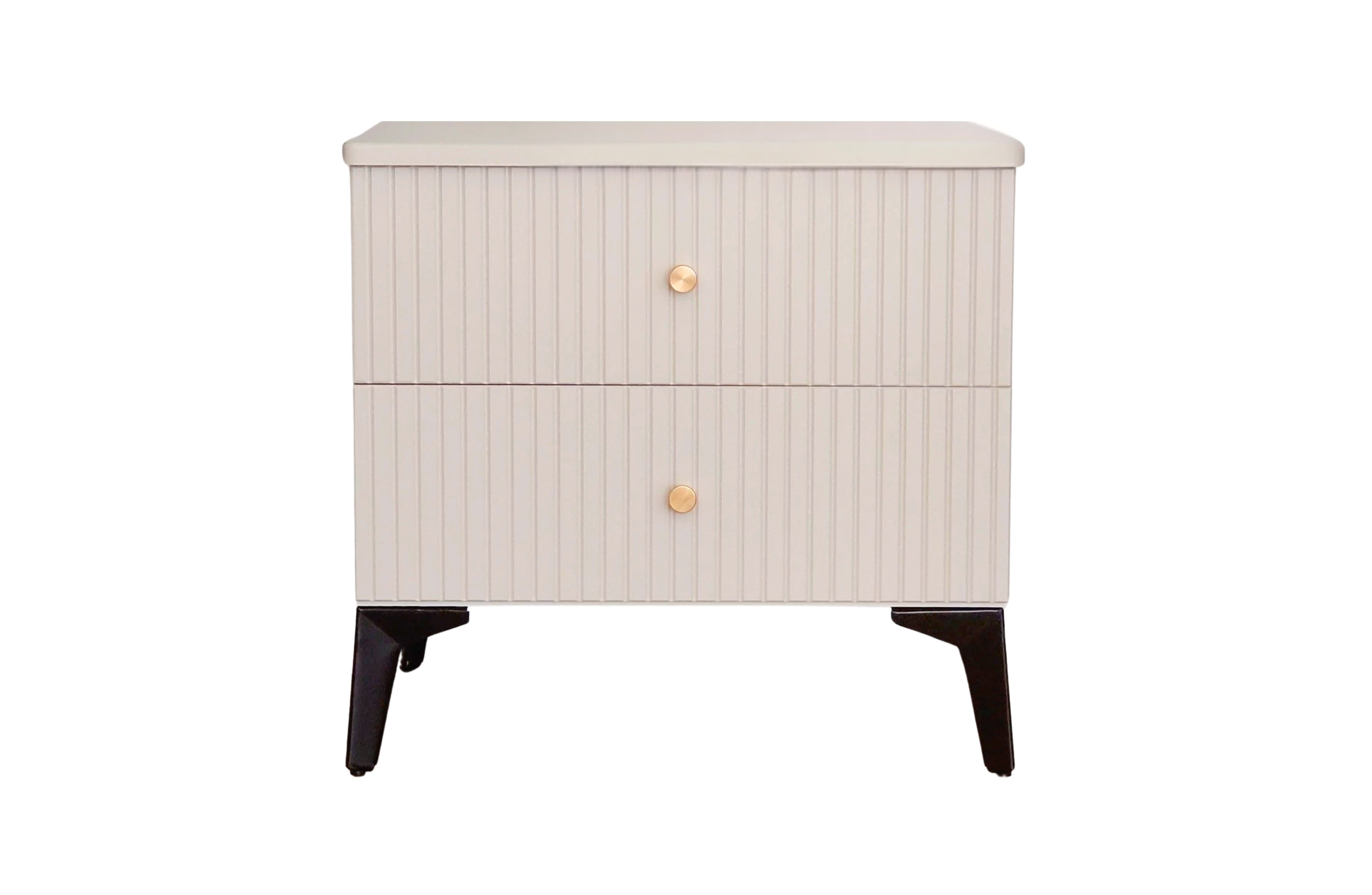 The Nexus Bedside Table brings refined balance to contemporary interiors with its soft grey finish, sleek gold handles, and grounded black legs. The simple, clean silhouette makes it a perfect fit for minimalist and tonal spaces.
