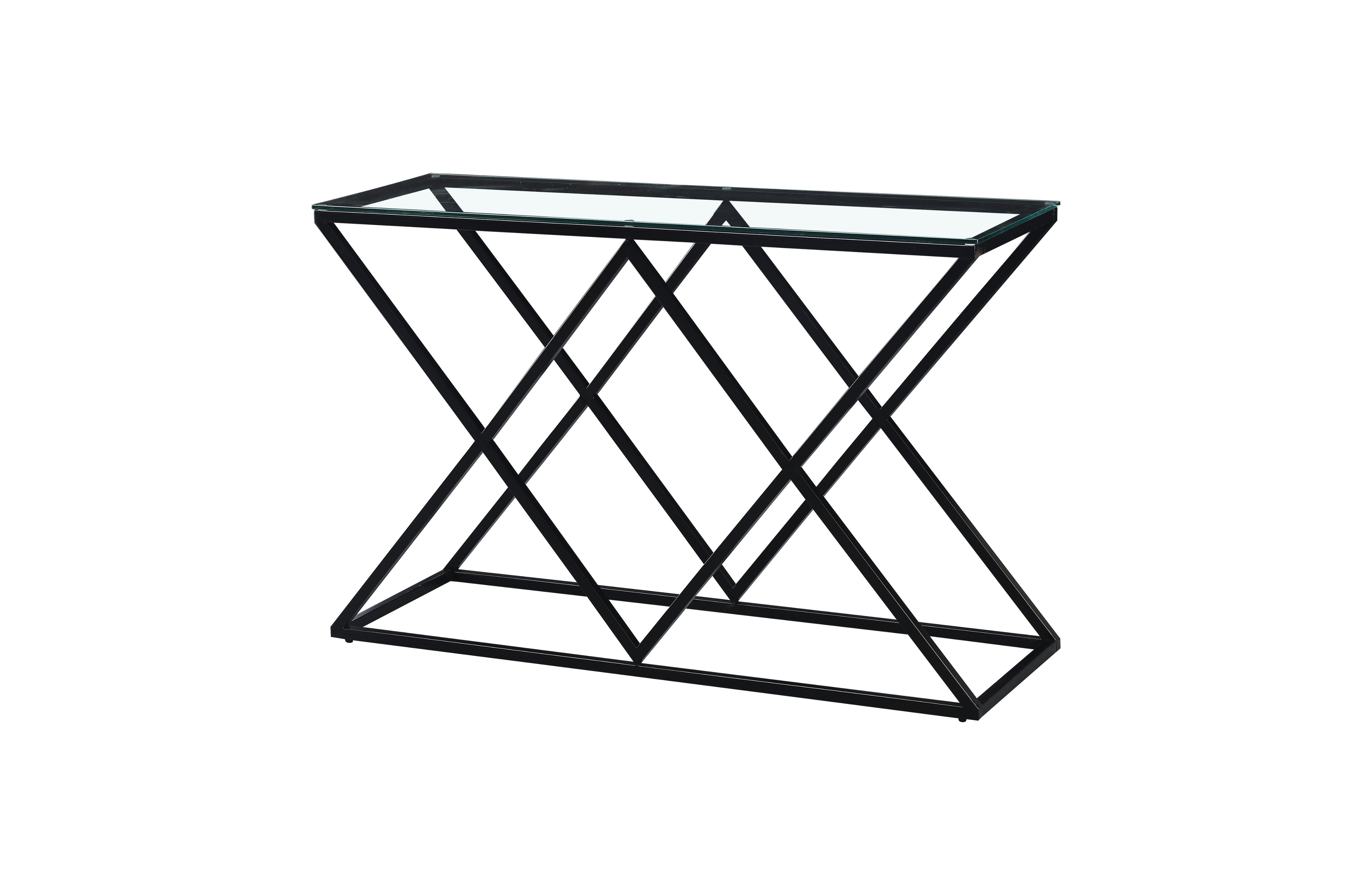 Open media with position 17 in modal popup Beverly console table with black frame and clear tempered glass top.