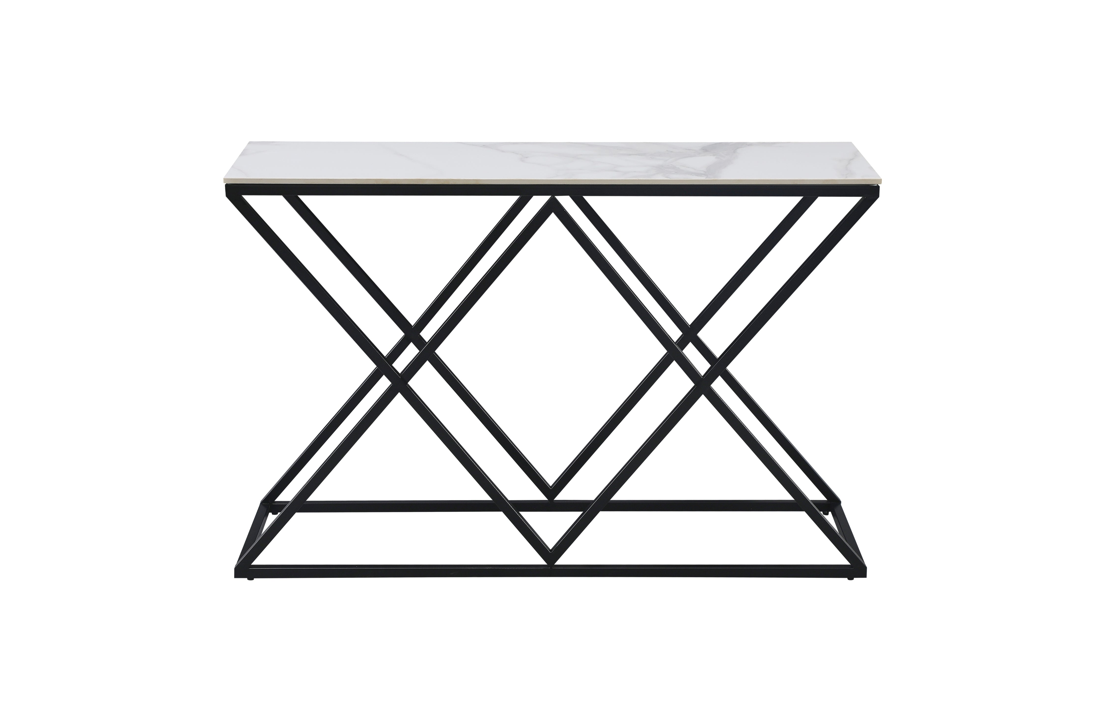 Open media with position 15 in modal popup Beverly console table with black frame and white marble top.
