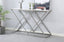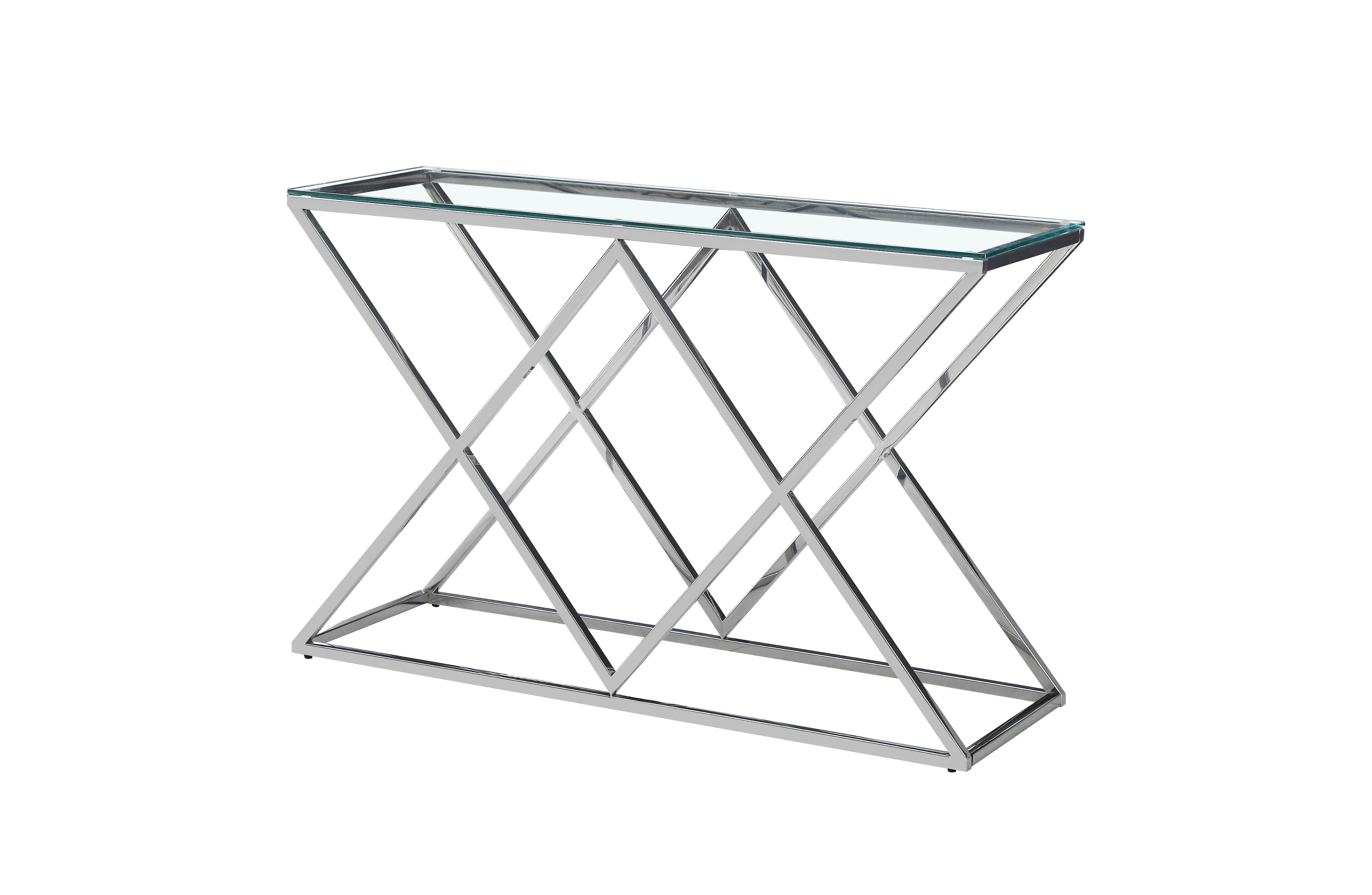 Open media with position 13 in modal popup Beverly console table with silver frame and clear tempered glass top.
