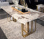 Finished with a polished stone top in soft neutral tones, the table showcases organic veining in a high-gloss finish, offering timeless appeal and easy pairing with both classic and contemporary décor.
