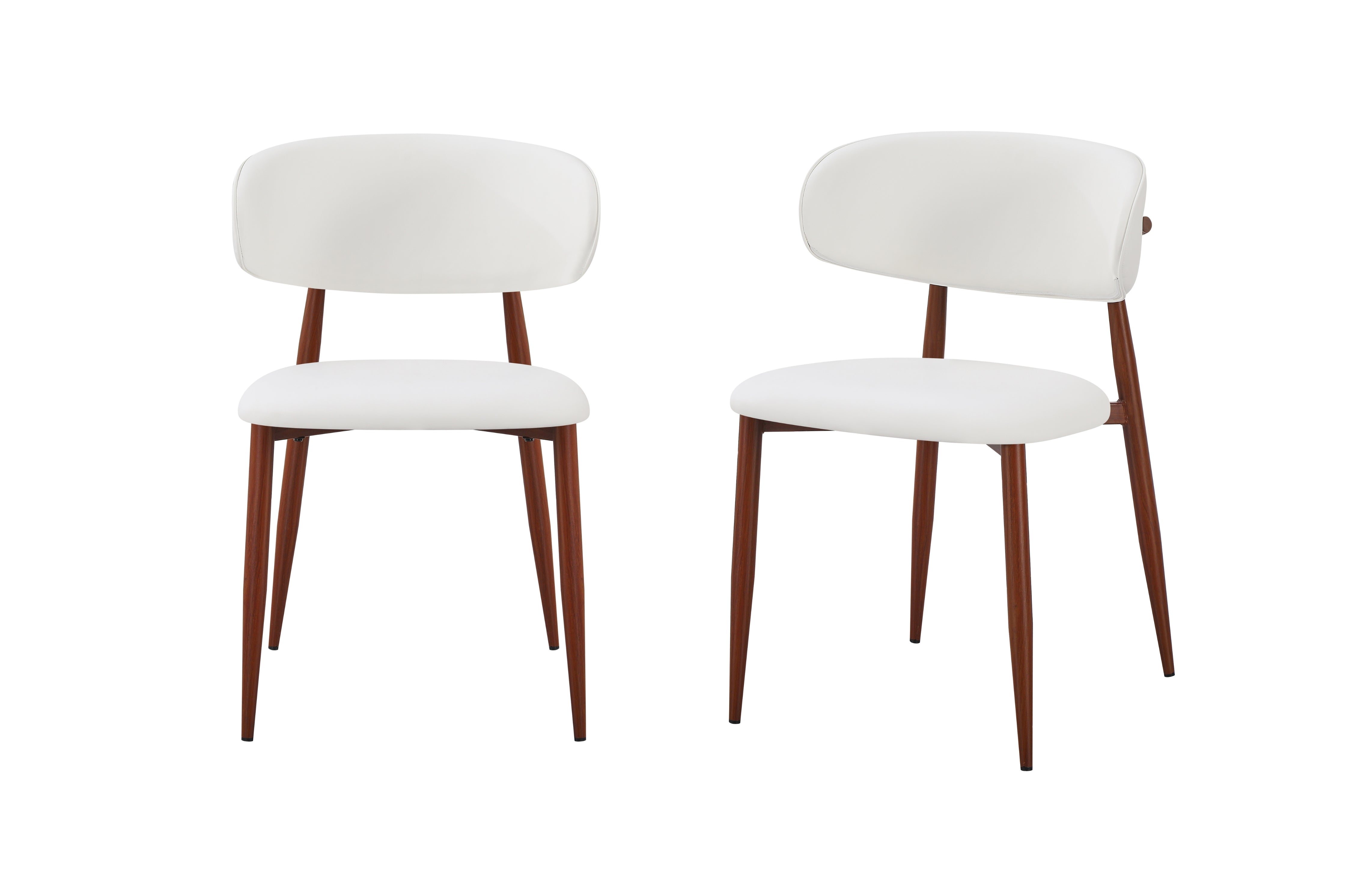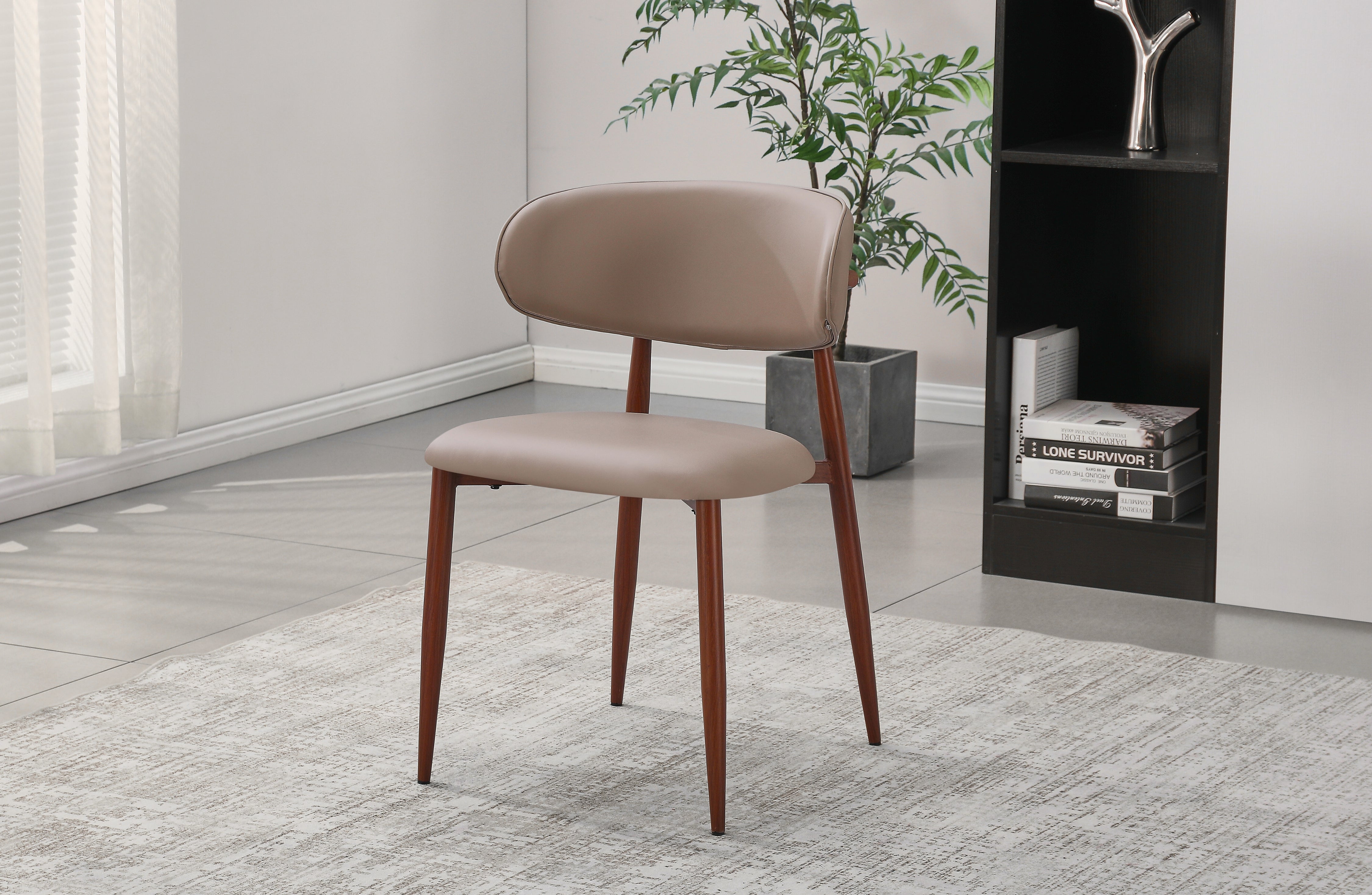 Elevate your dining area with the Riley Vegan Leather Dining Chair, featuring a sleek design that combines comfort and style. The back and seat are covered in smooth PU leather, while the metal legs are finished with a warm walnut color transfer paint, adding a natural touch to the modern aesthetic. Perfect for both casual meals and formal dining, this chair offers durable elegance and lasting comfort.