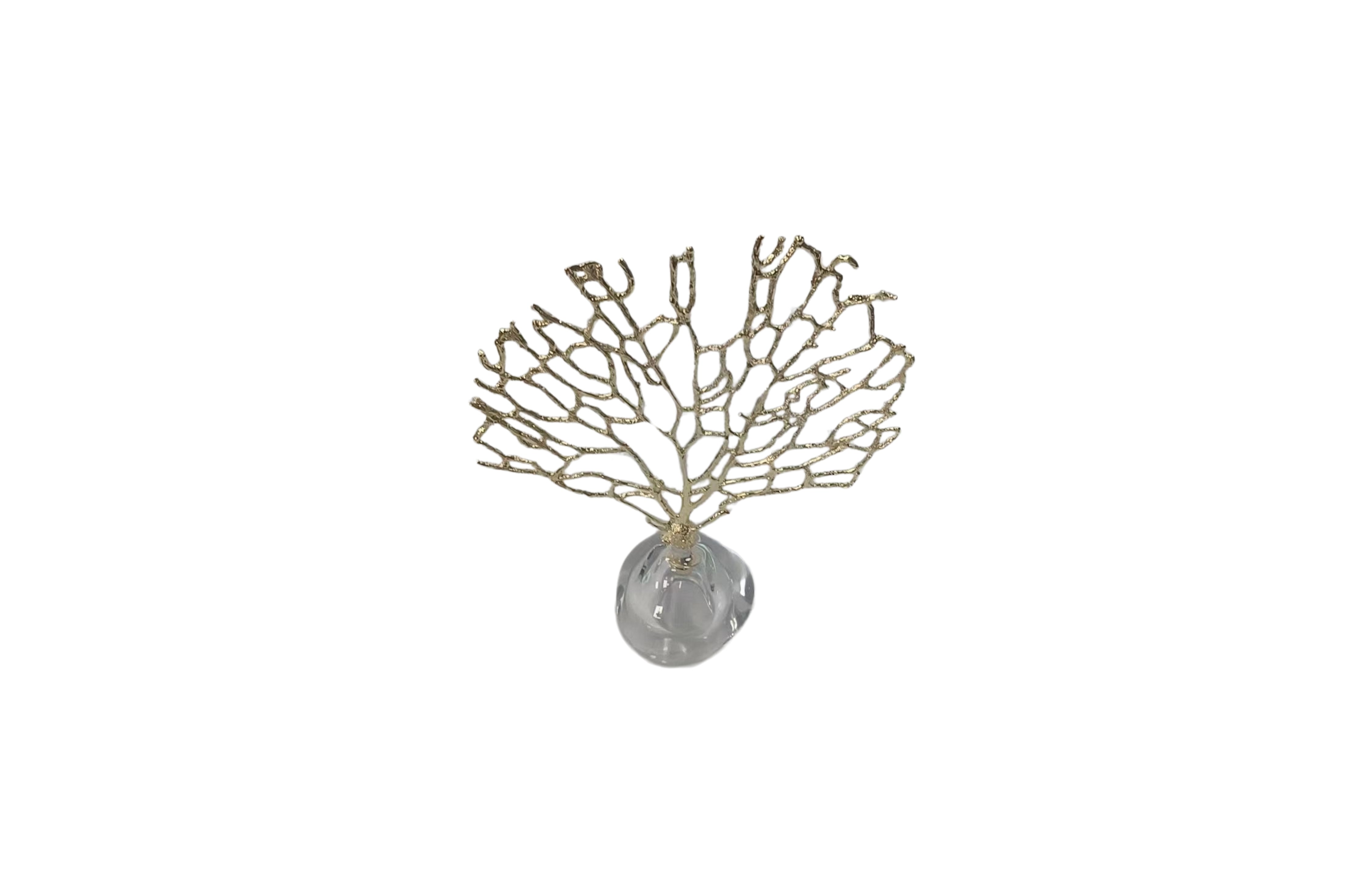 • Small Gold Crystal Tree Table Décor with detailed gold-toned branches and a clear glass base for a delicate and luxurious accent