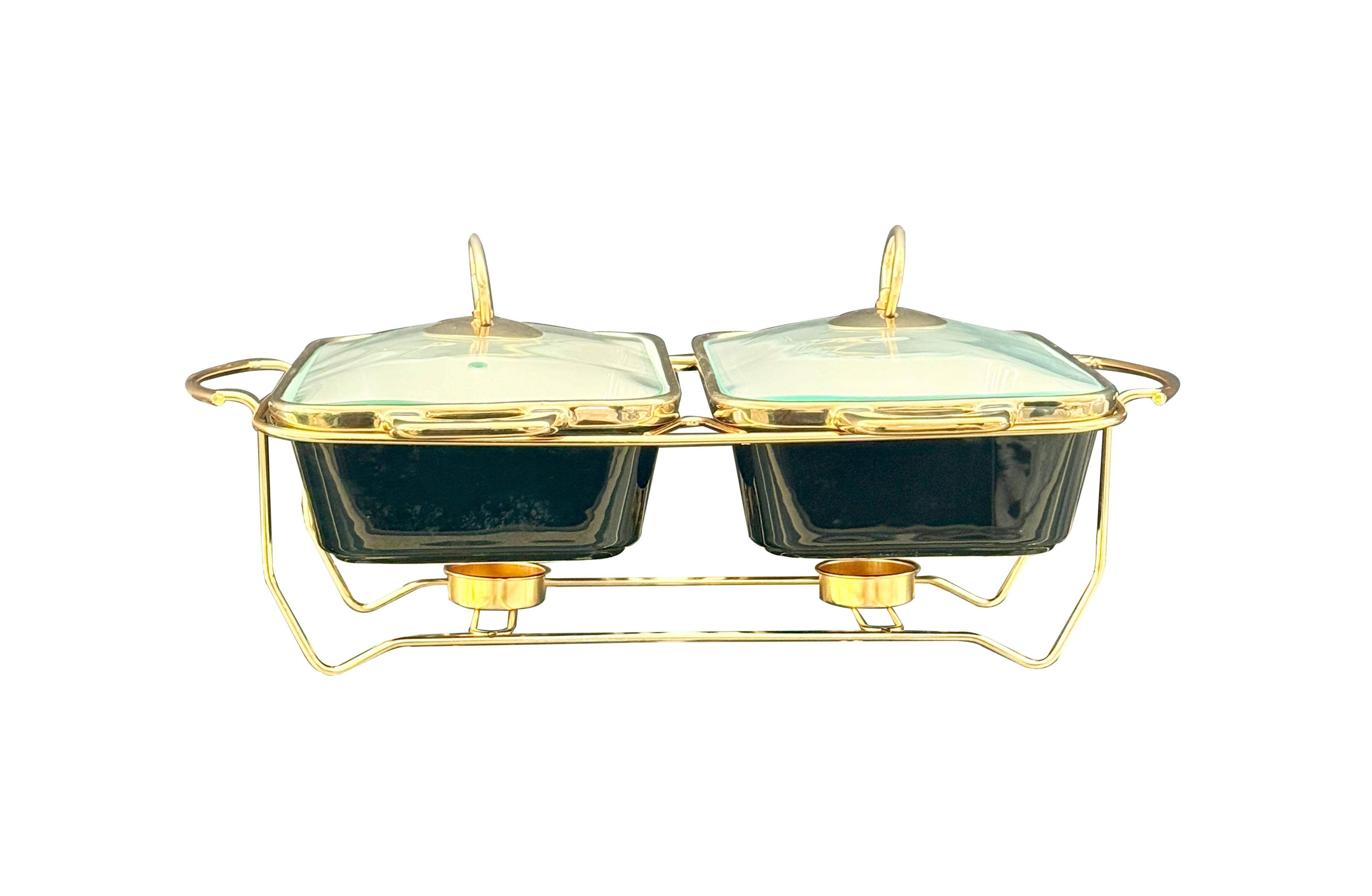 Twin Set Luxury Chafing Dish with Lid & Rack Food Warmer – 2 Colours Available