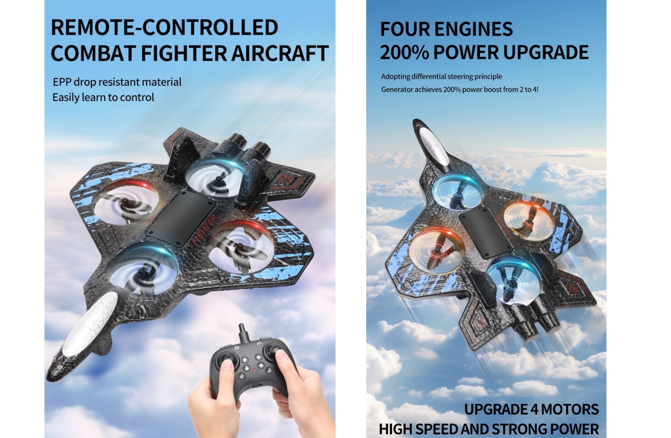 • Foam Starfighter Jet RC Plane with LED Lights & 360° Flip - Remote Controlled Toy