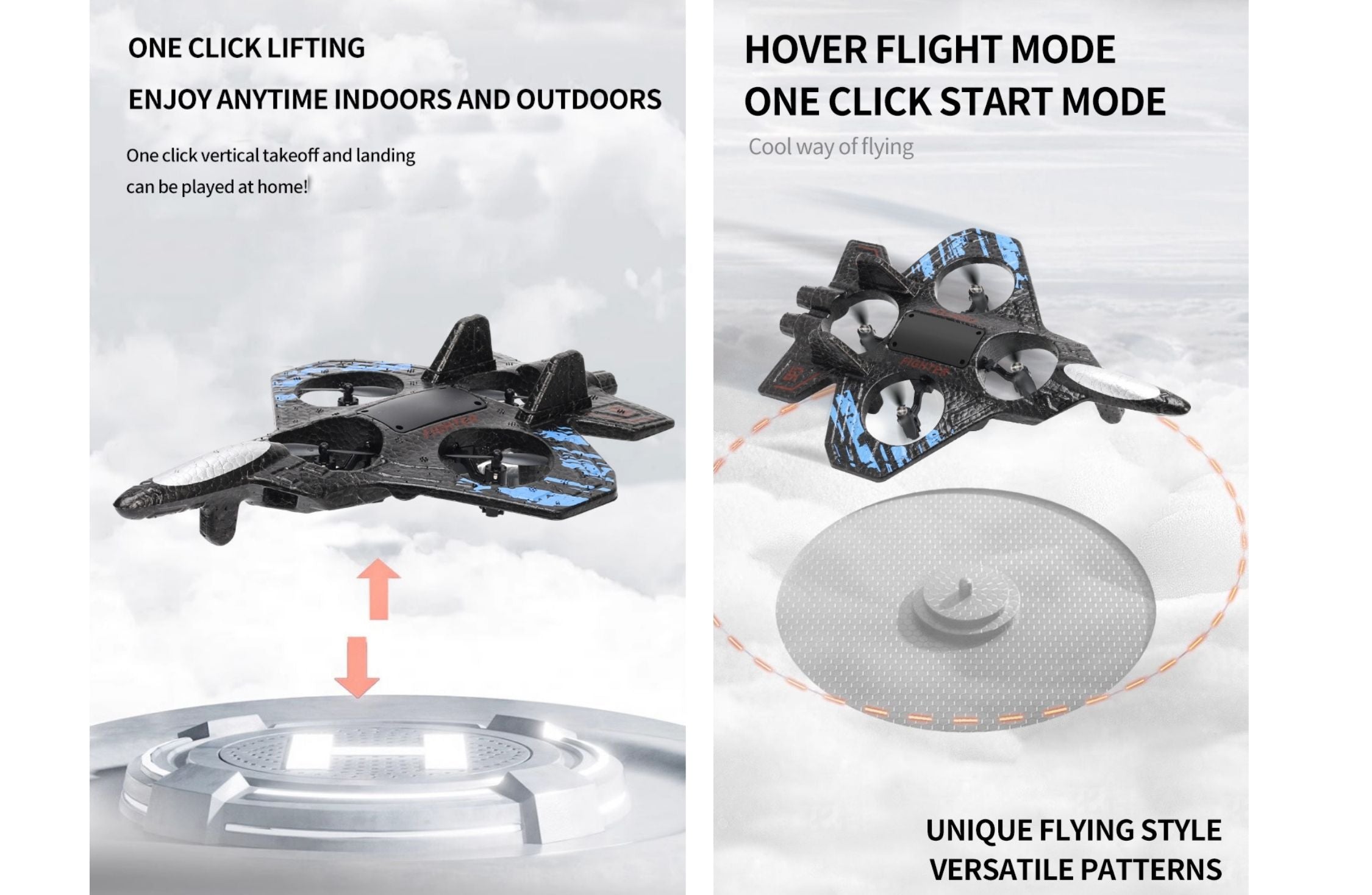 To play, switch it on, grab the remote, and start piloting like a real ace. Fly it through open spaces, practise smooth turns and quick direction changes, then show off the 360° flips for next-level stunts. The LED lights add extra excitement, especially in shaded areas or late afternoon play, making it easier to track the jet while it’s in motion. A great choice for beginners and confident flyers alike, it’s perfect for active outdoor fun and imaginative mission play.