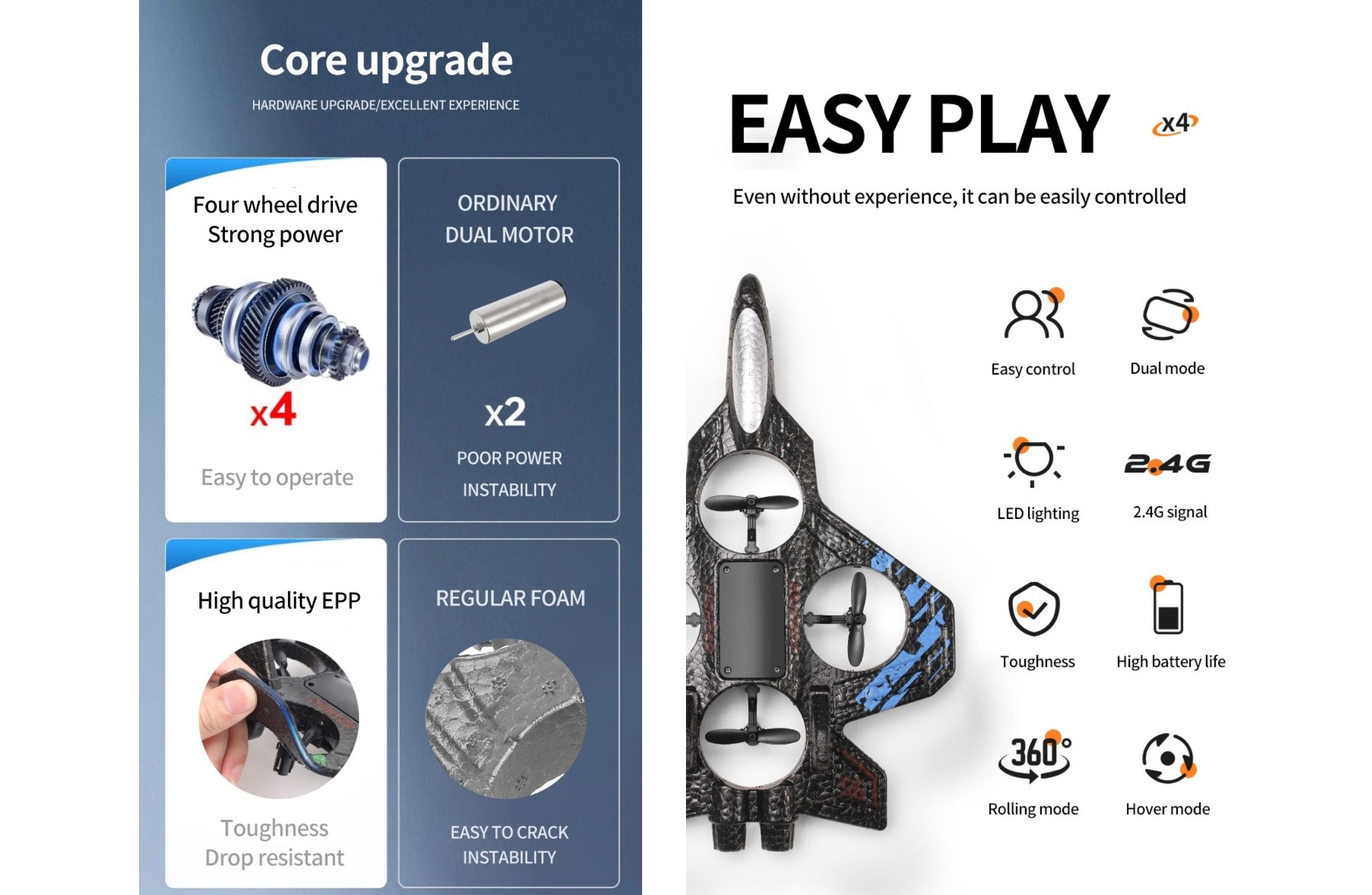 • Exciting 360° flip stunt feature for extra fun