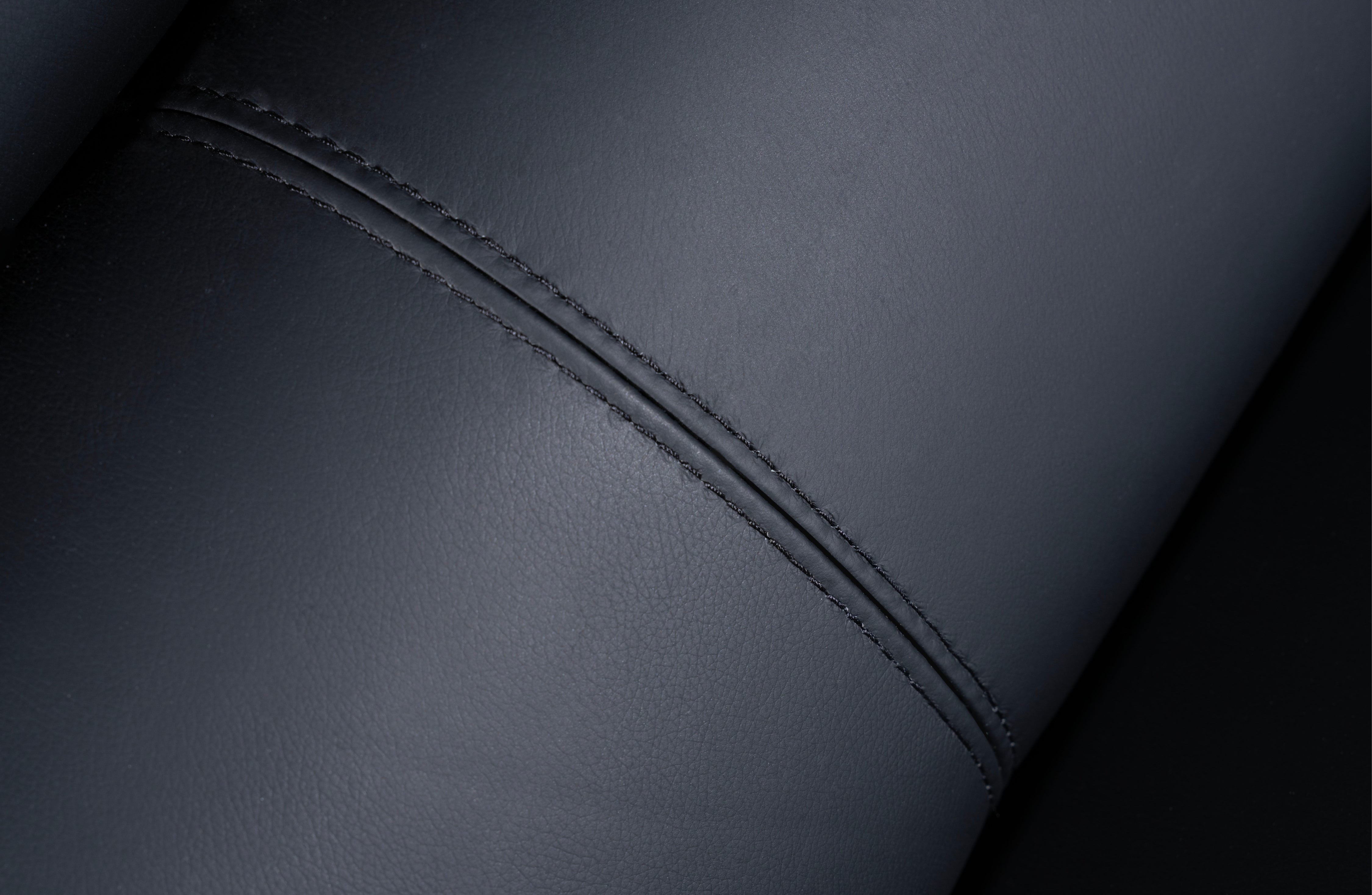 • Close-up view of Lawson black leather sofa showcasing fine stitching detail and smooth premium upholstery.