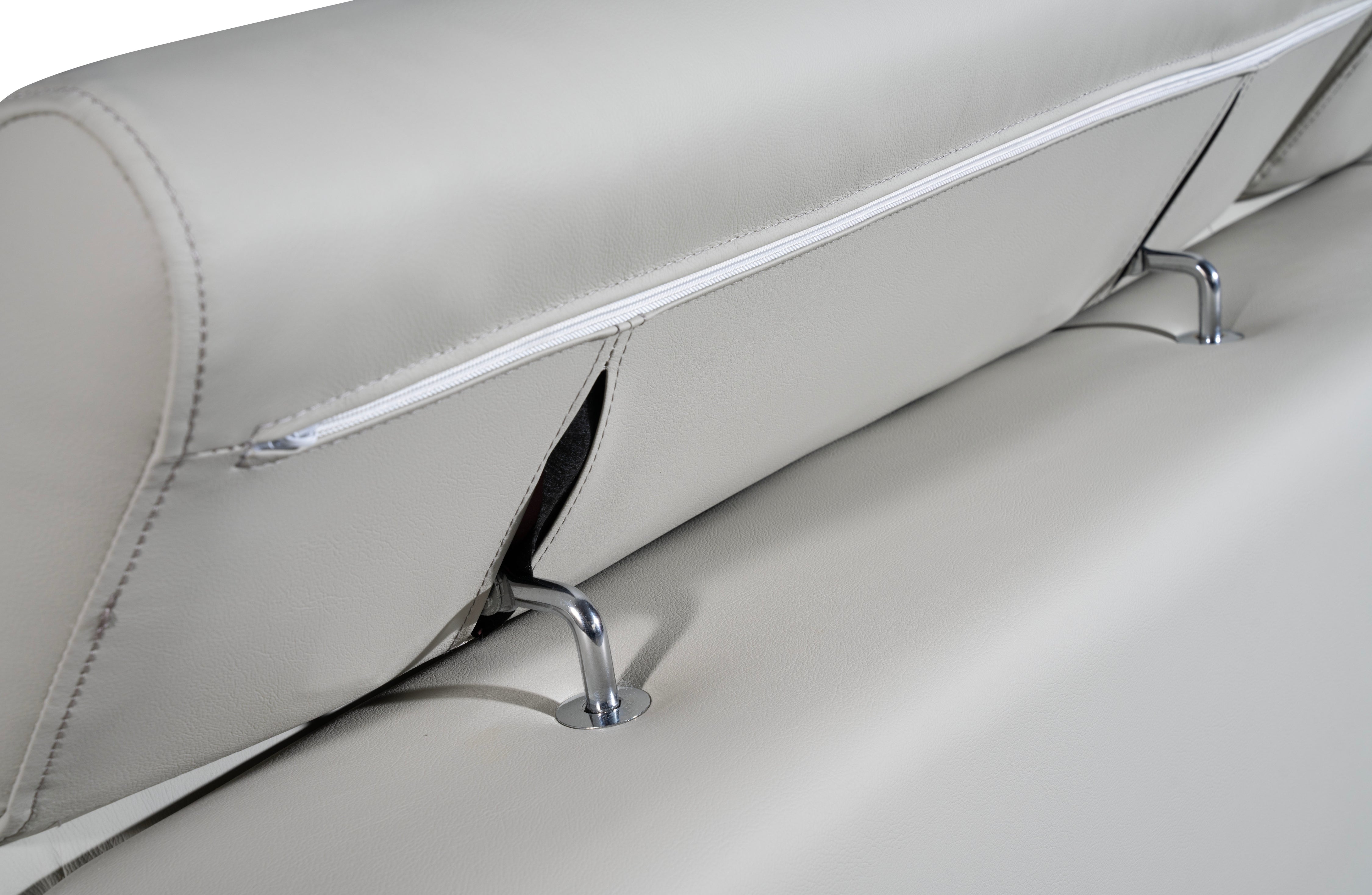 Open media with position 10 in modal popup Close-up of Lawson light grey sofa showing adjustable headrest mechanism with chrome support brackets.
