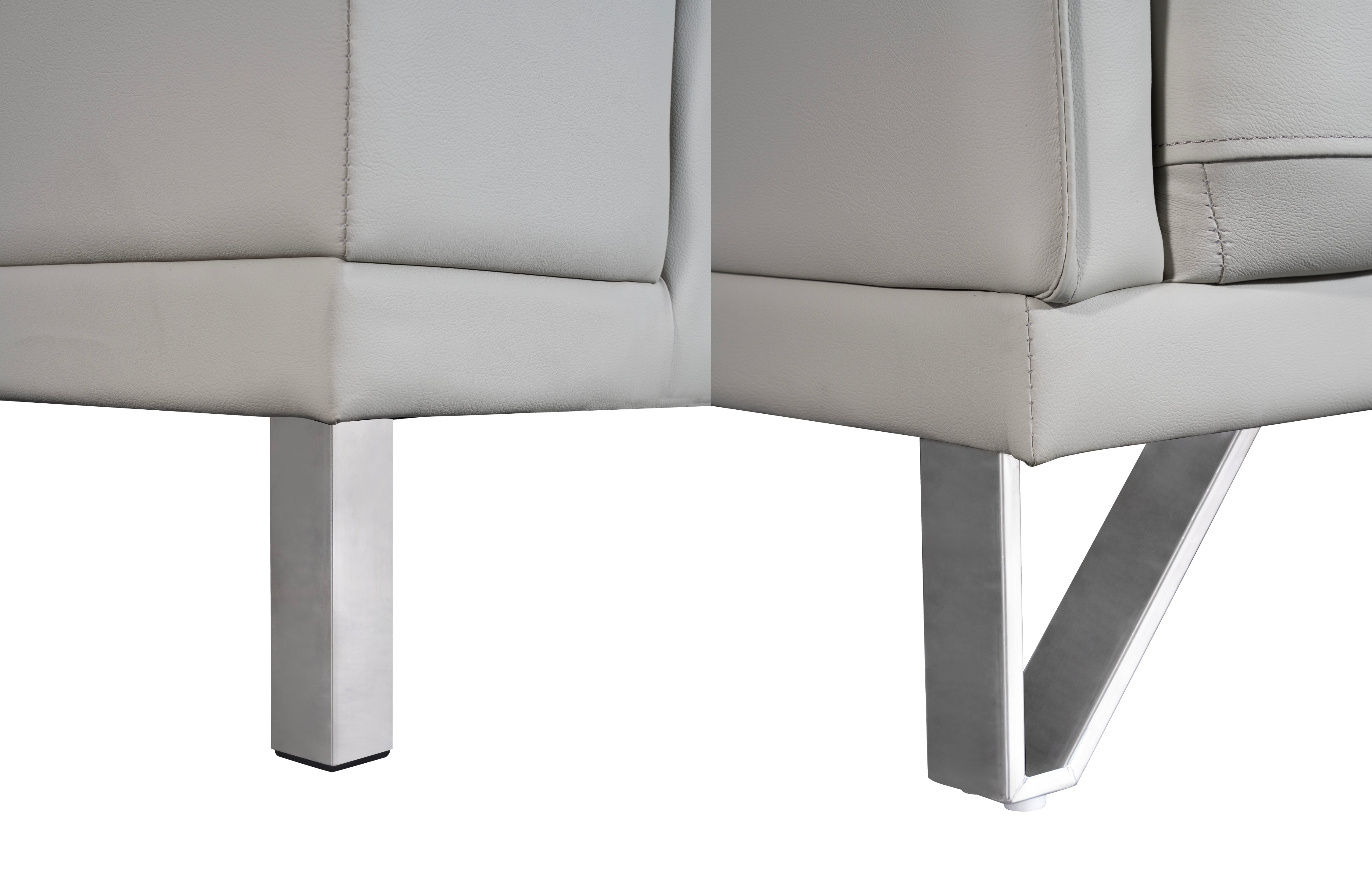 Close-up of Lawson light grey sofa legs featuring sleek stainless steel supports and modern geometric design.