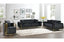 Black velvet sofa set featuring deep-cushioned three-seater and two-seater with gold trims