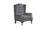 • Charcoal grey Chesterfield tufted armchair with high back and timber legs