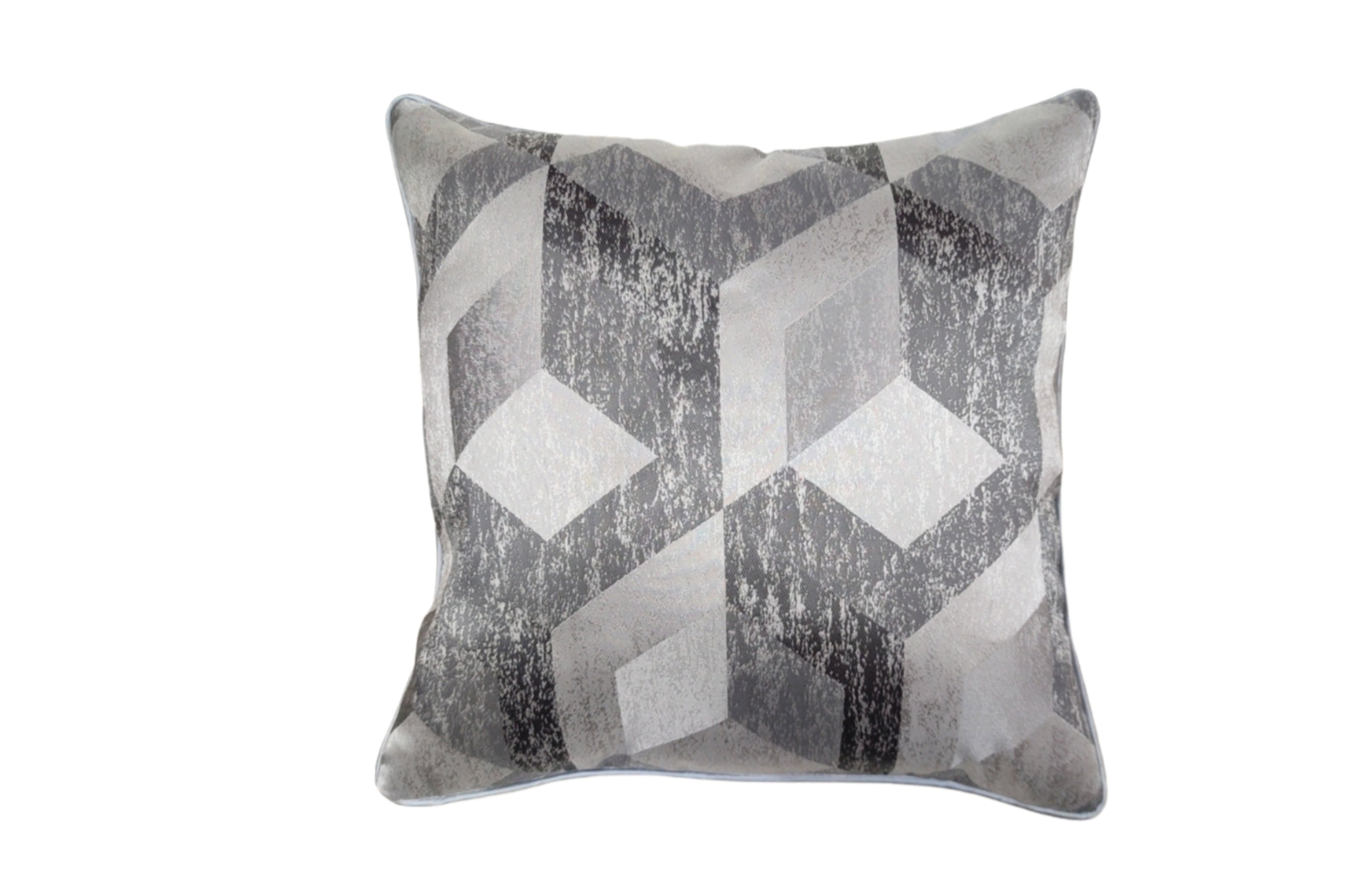 Diamant Grey designer luxury cushion with geometric diamond pattern in silver and grey tones, 45x45cm.