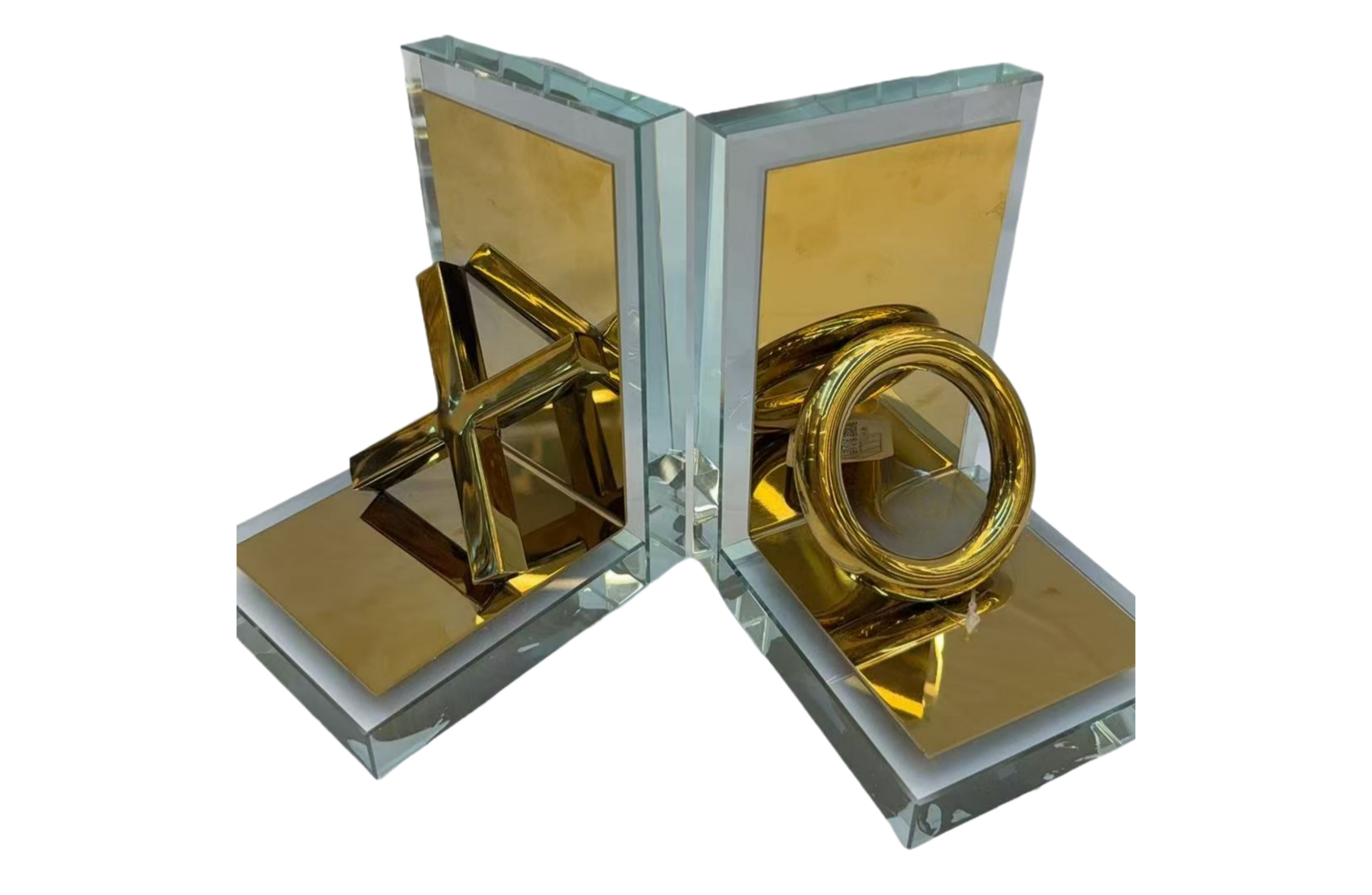 The Tic Tac Toe Bookends by Elegant Collection bring a playful yet refined touch to any bookshelf or desk. Featuring polished X and O symbols in a rich gold-tone finish, each piece is mounted on a clear base with a mirrored backing for added depth and shine. These decorative bookends merge charm and function—perfect for styling shelves, desks, or study nooks while keeping books neatly arranged.
