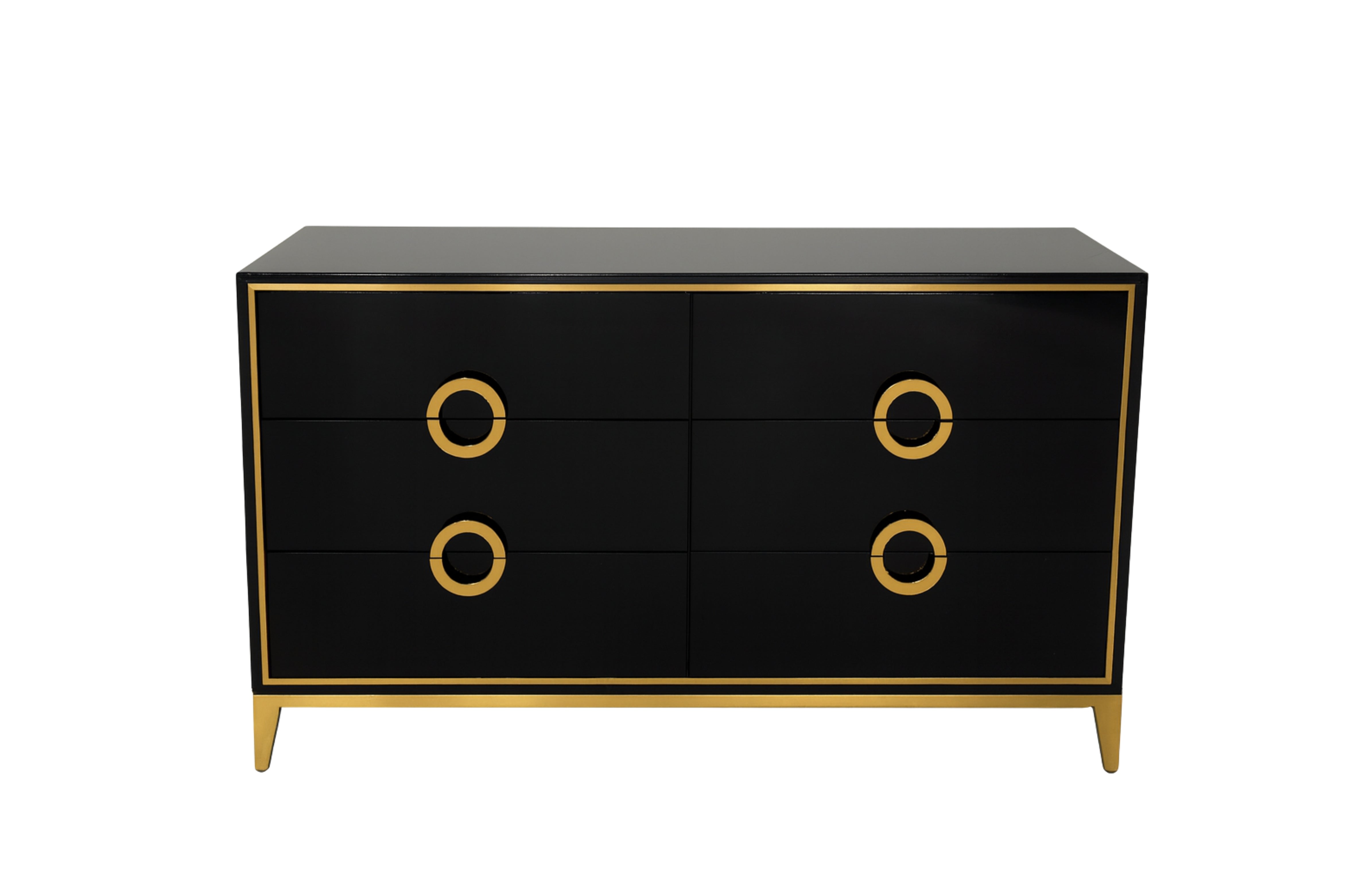 Balmain dresser set in black and white options, both with gold trim and six spacious drawers.