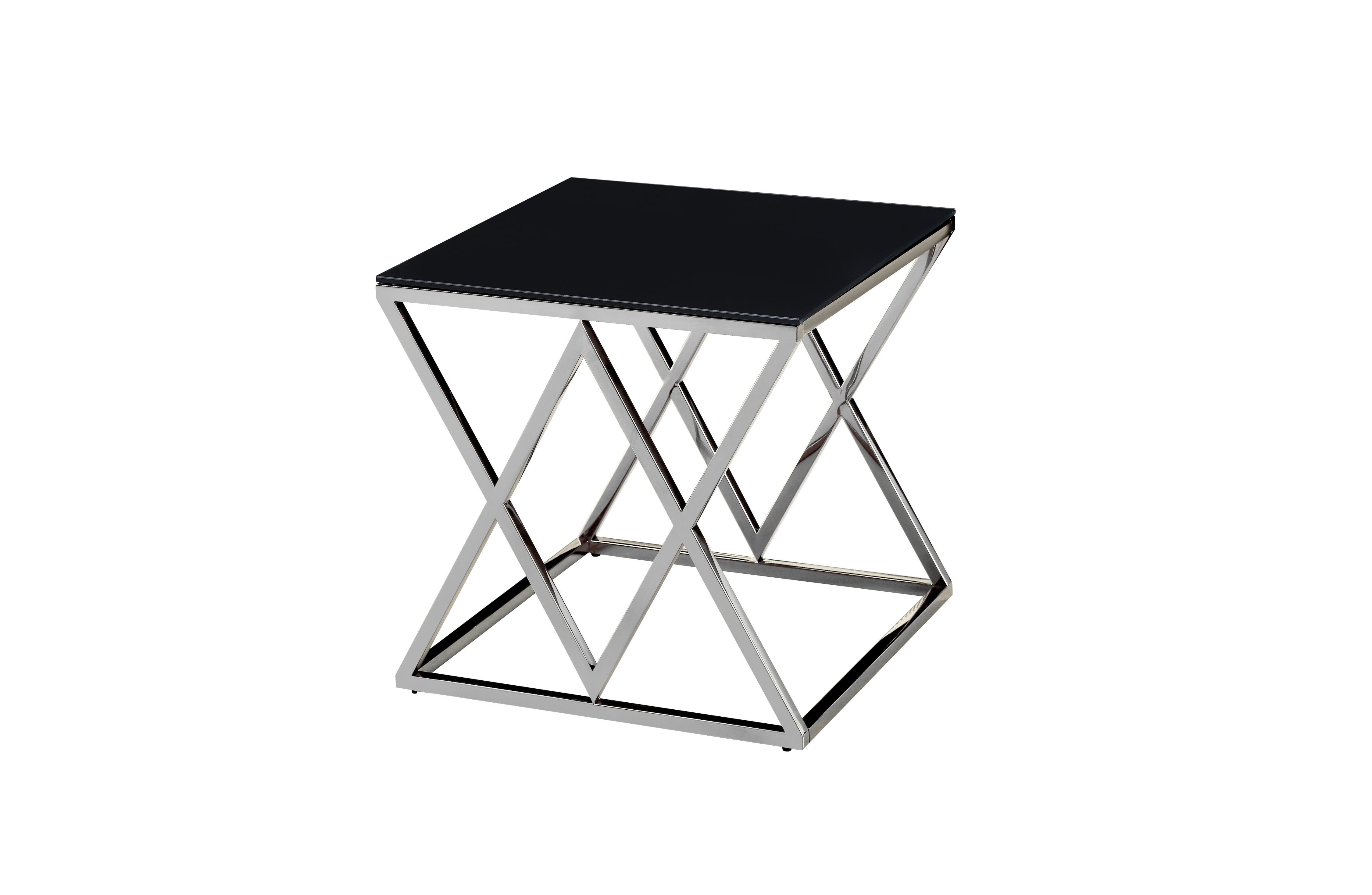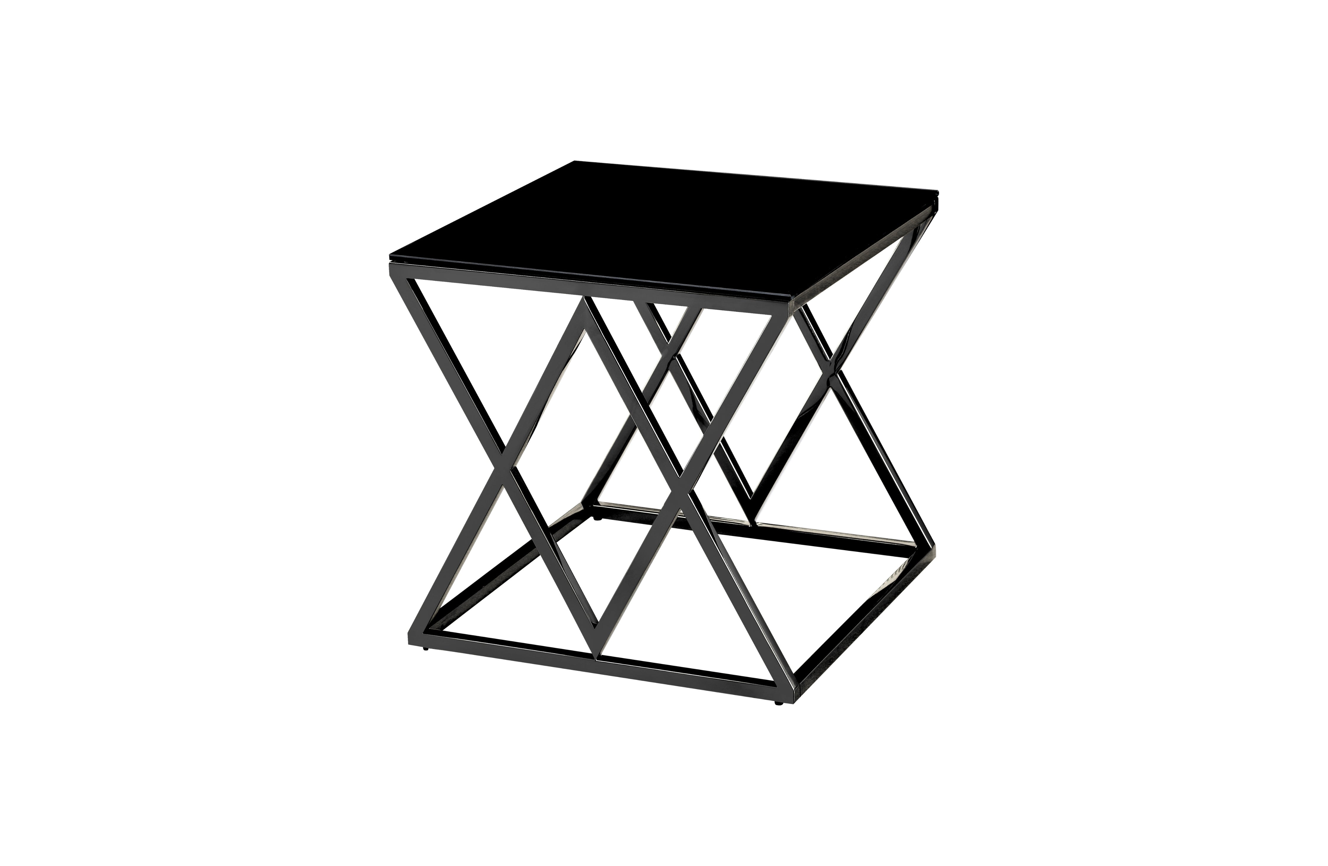 Beverly side table in sleek black frame with matching black tempered glass top.