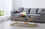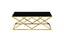 Beverly coffee table in gold frame with bold black tempered glass top.