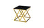 Beverly side table in gold frame with black tempered glass top, modern stylish piece.