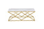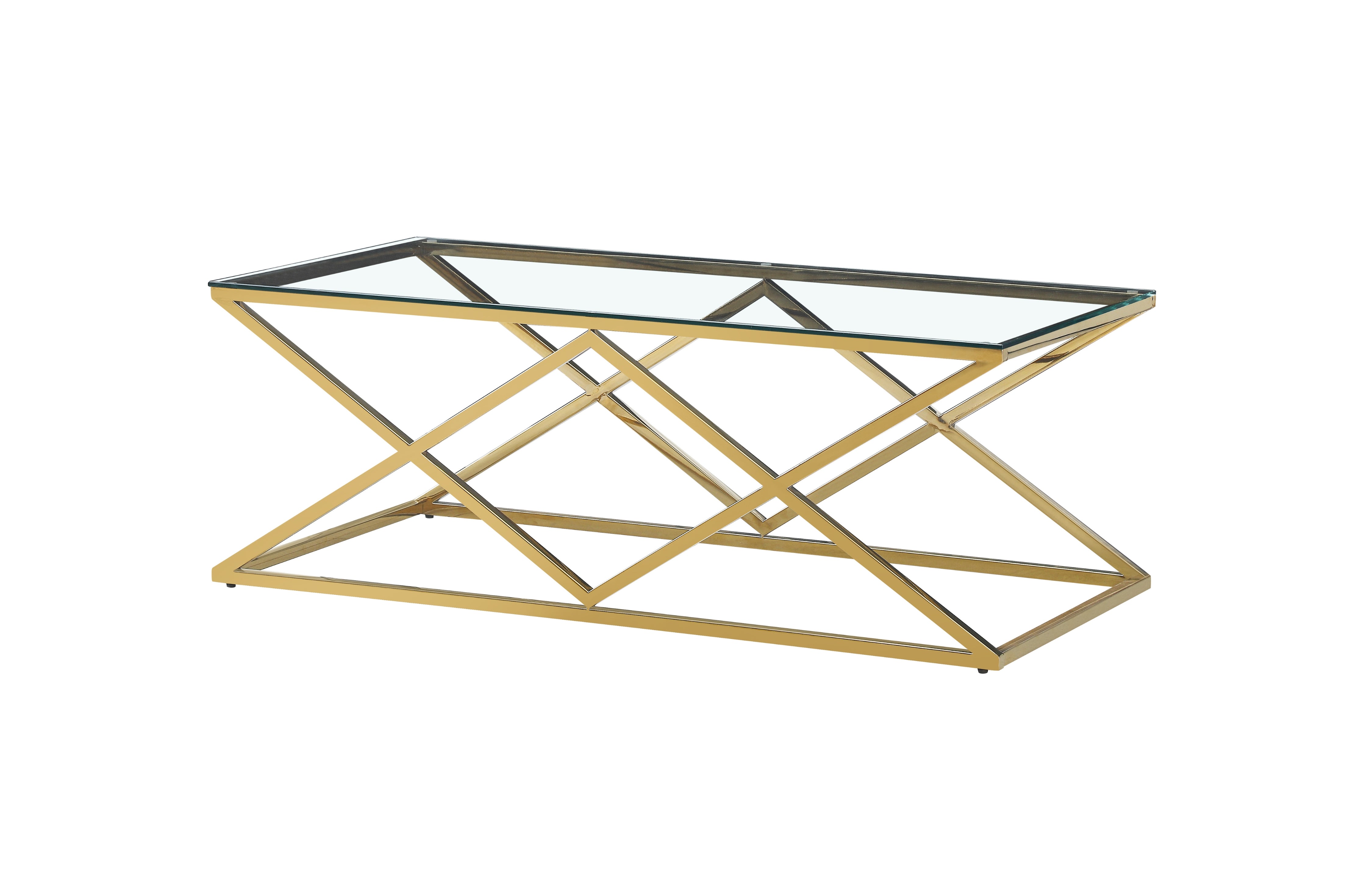 • Beverly coffee table in gold polished frame with clear tempered glass top.