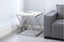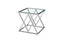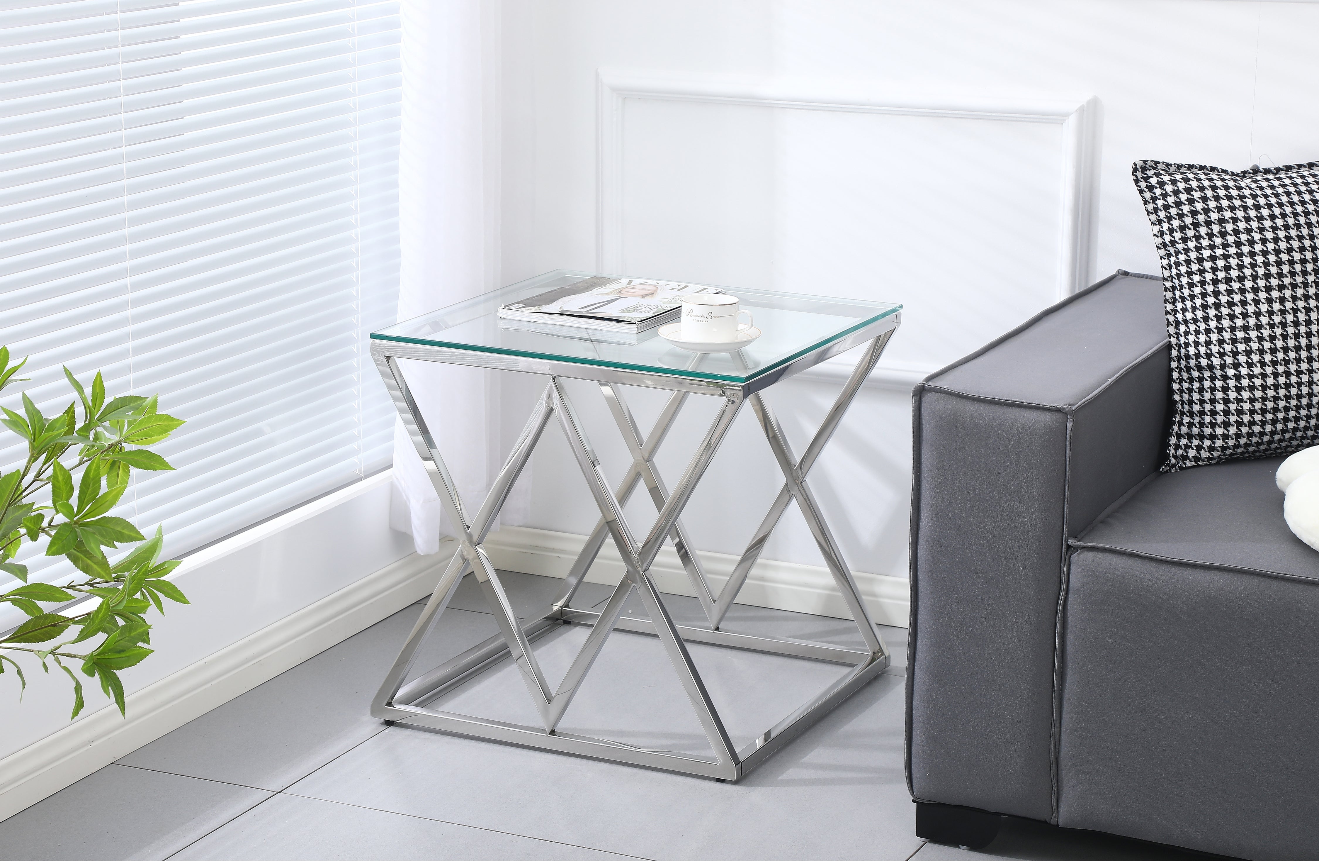 Beverly side table in polished silver frame with clear tempered glass top, modern style.