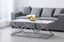 Beverly coffee table in silver polished frame with black tempered glass top.
