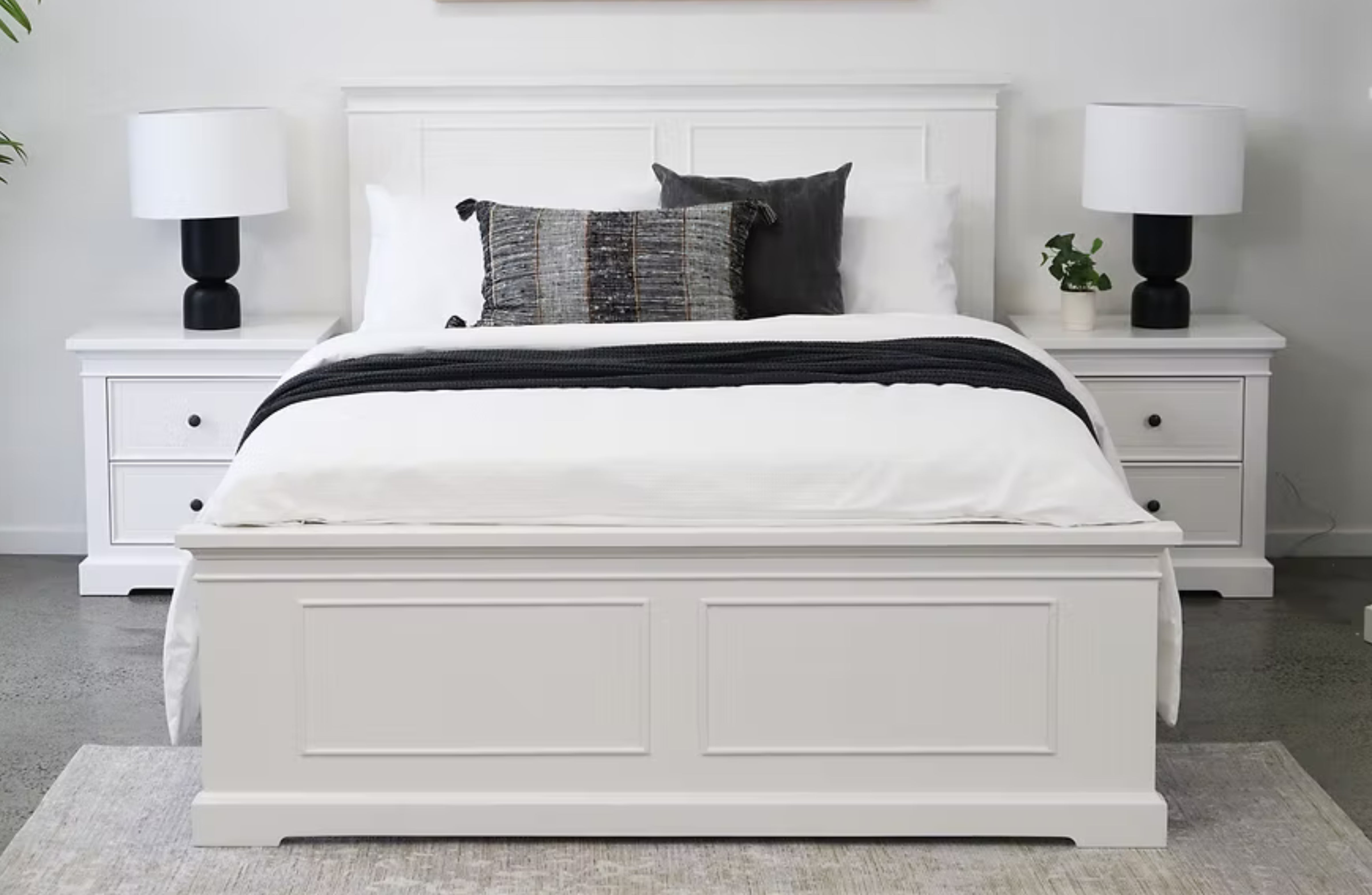 Create a beautifully bright and coastal-inspired bedroom with the Hamptons White Bed Frame, part of the coordinated Hamptons Collection, which also includes the matching dresser, tallboy and bedside tables. Designed to bring a clean, timeless and elegant aesthetic, this collection is perfect for achieving the classic Hamptons look in any home.