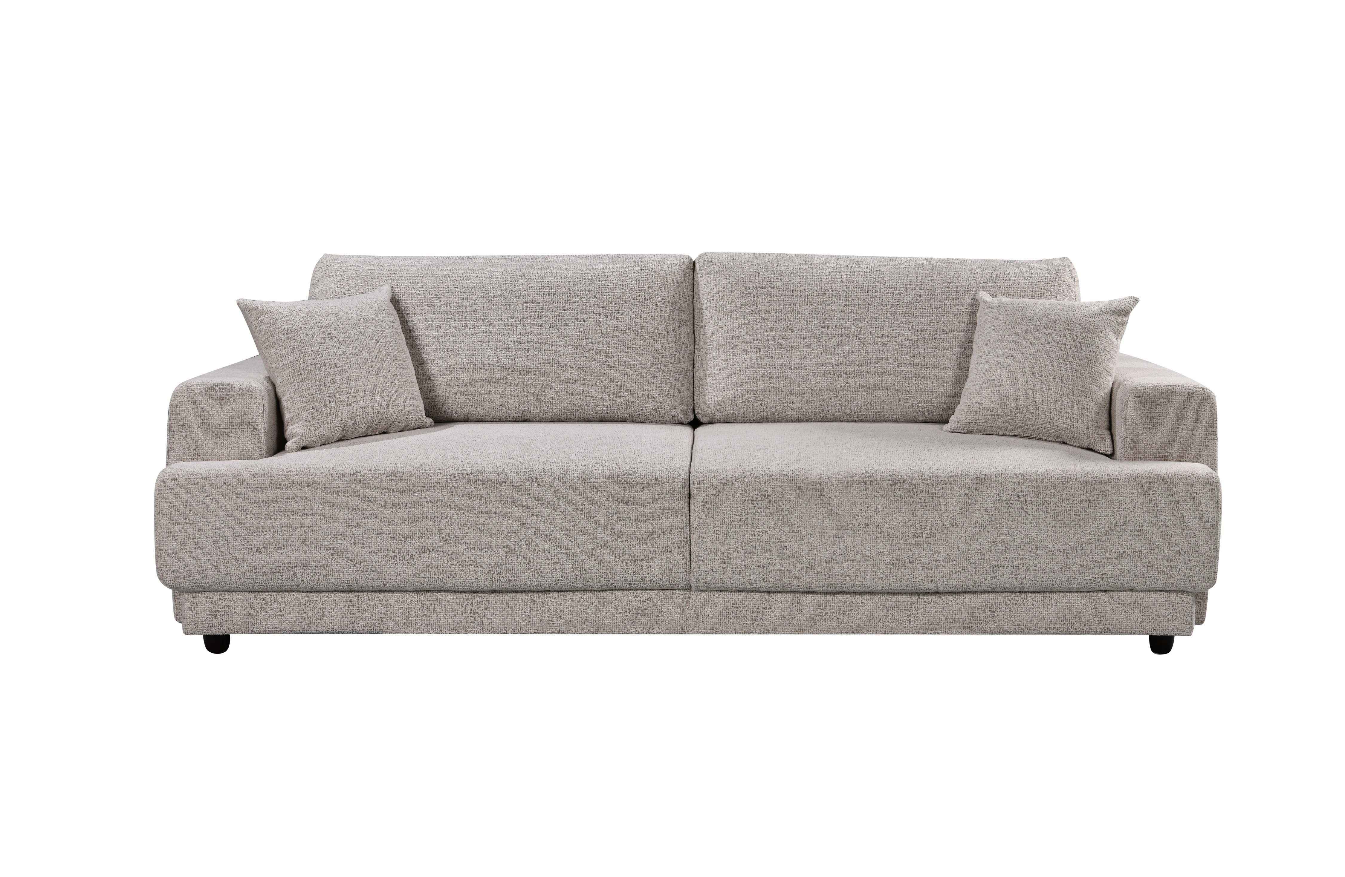 Beige 3-seater Nora sofa bed with plush cushions – sleek, modern, and convertible.