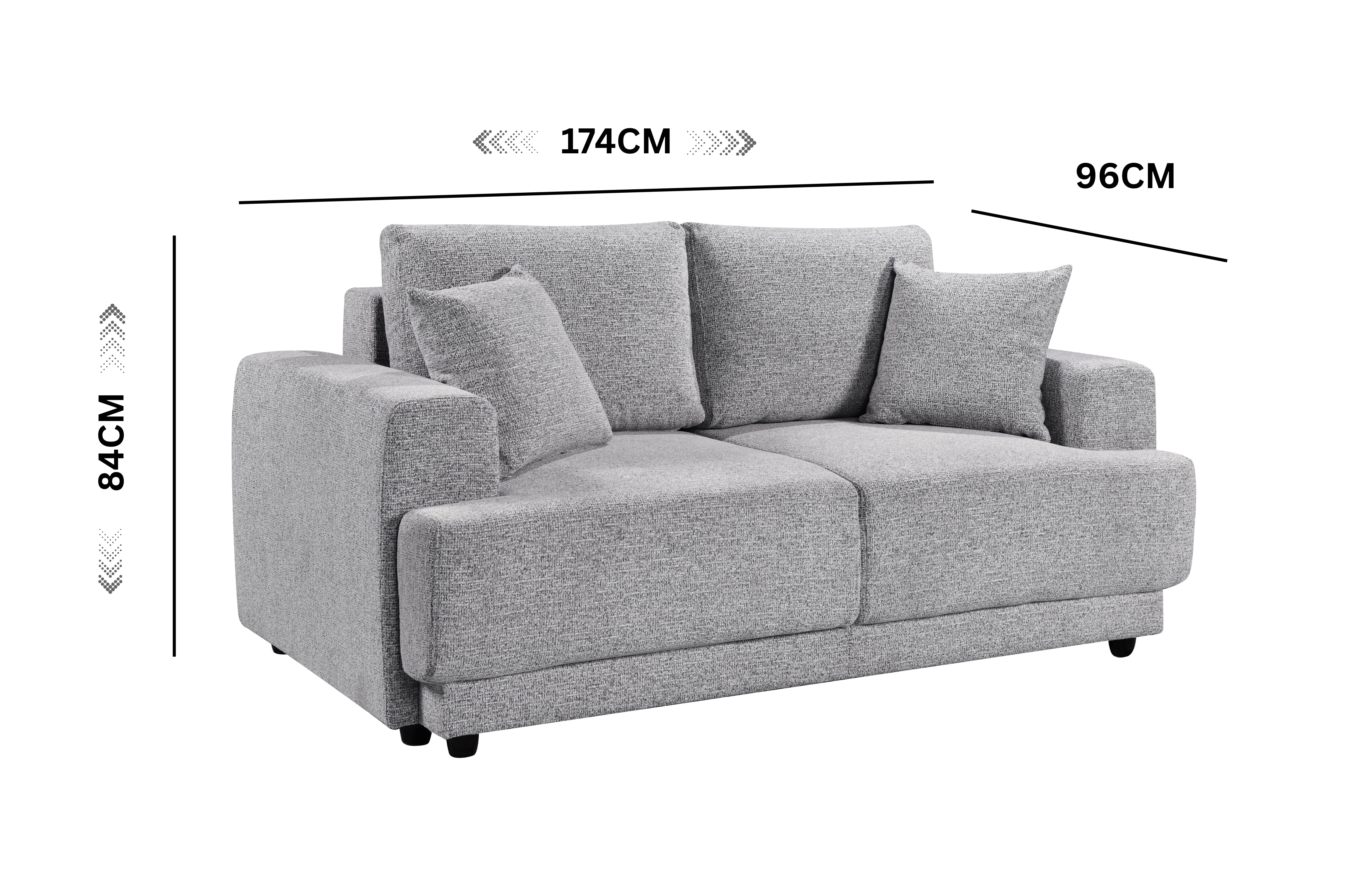 Compact grey 2-seater sofa – soft fabric, deep cushions, and bold design perfect for apartments or cozy corners