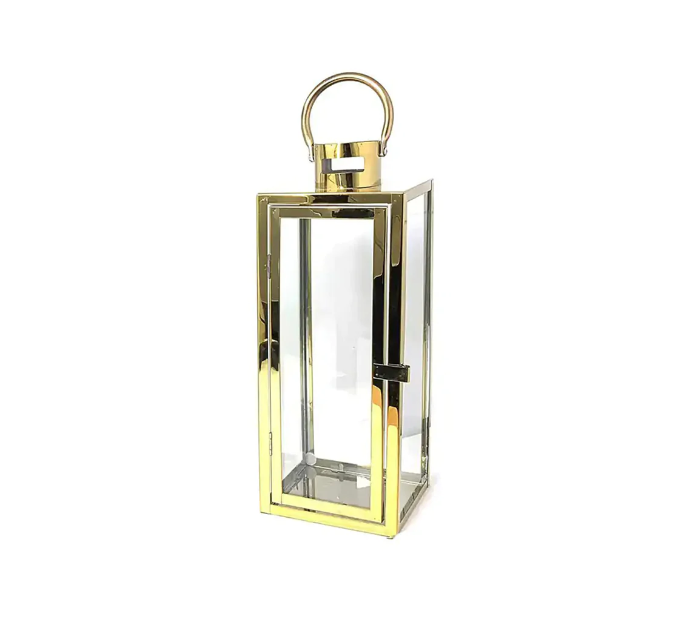 • Sophisticated medium gold lantern perfect for candles or décor.