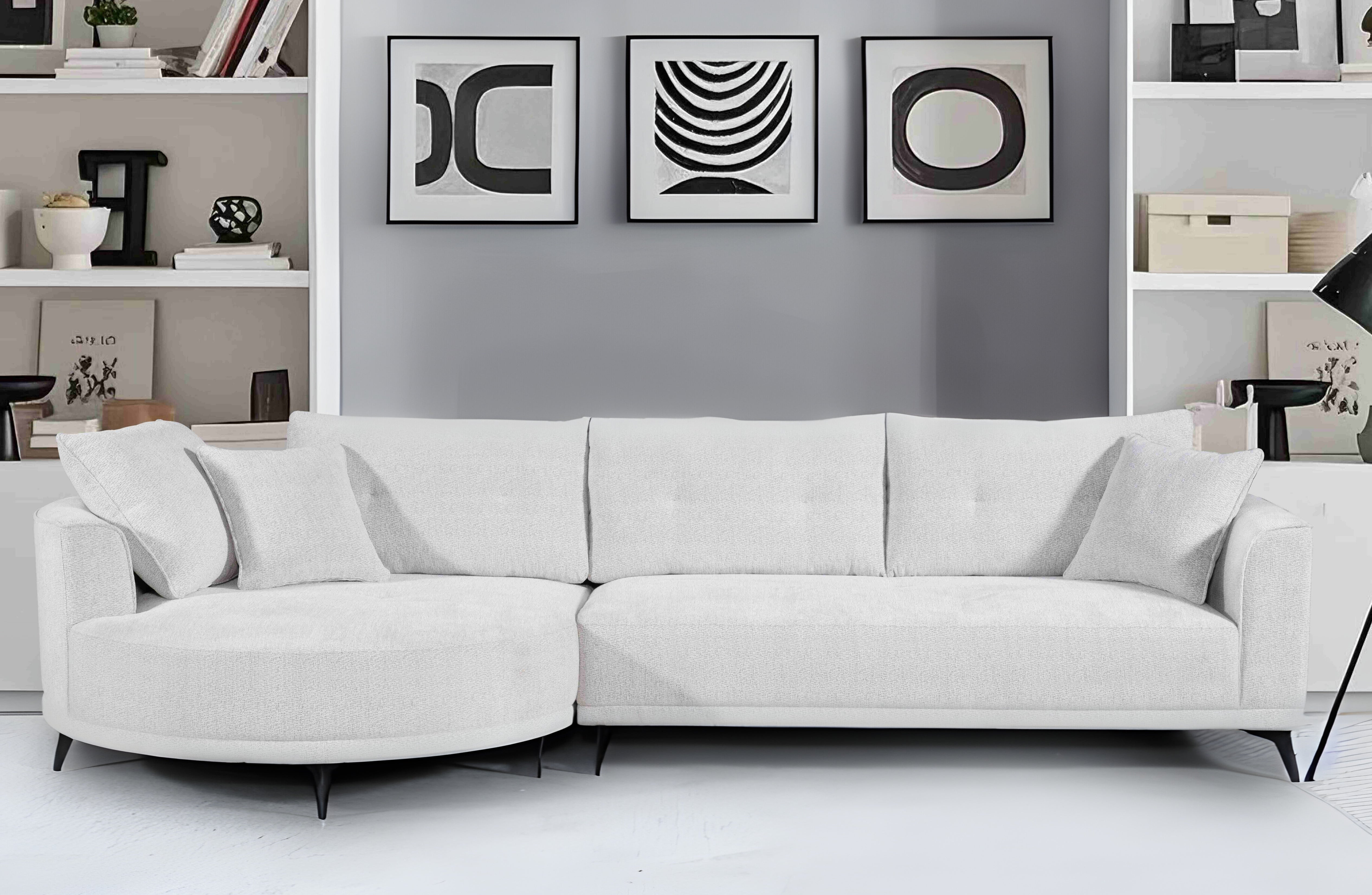 • Savannah Round Chaise Lounge Set in Beige – Stylish curved chaise and plush 3-seater sofa offering a soft, inviting profile for modern living.
