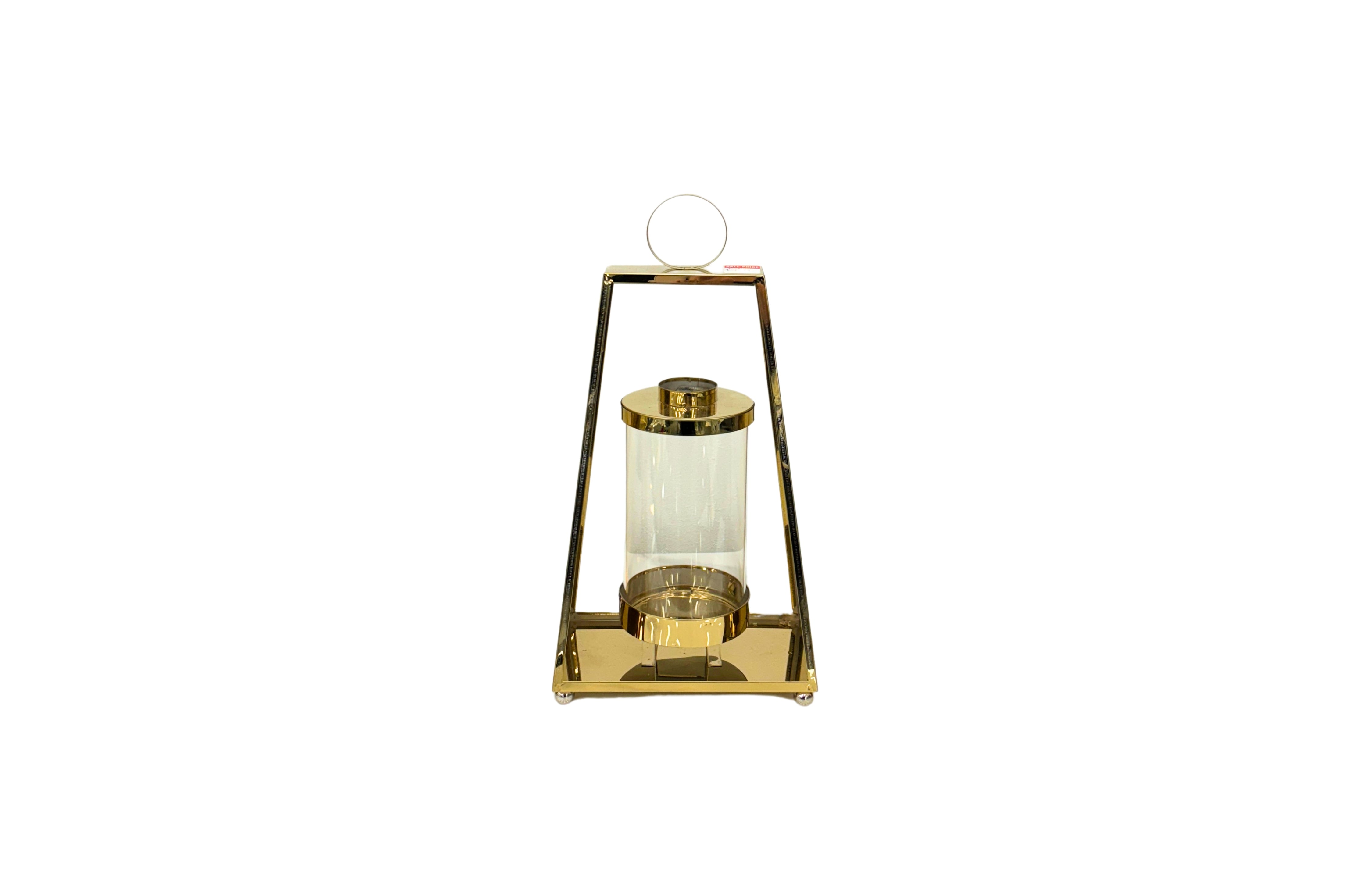 • Medium gold tear-shaped lantern – modern steel candle holder
