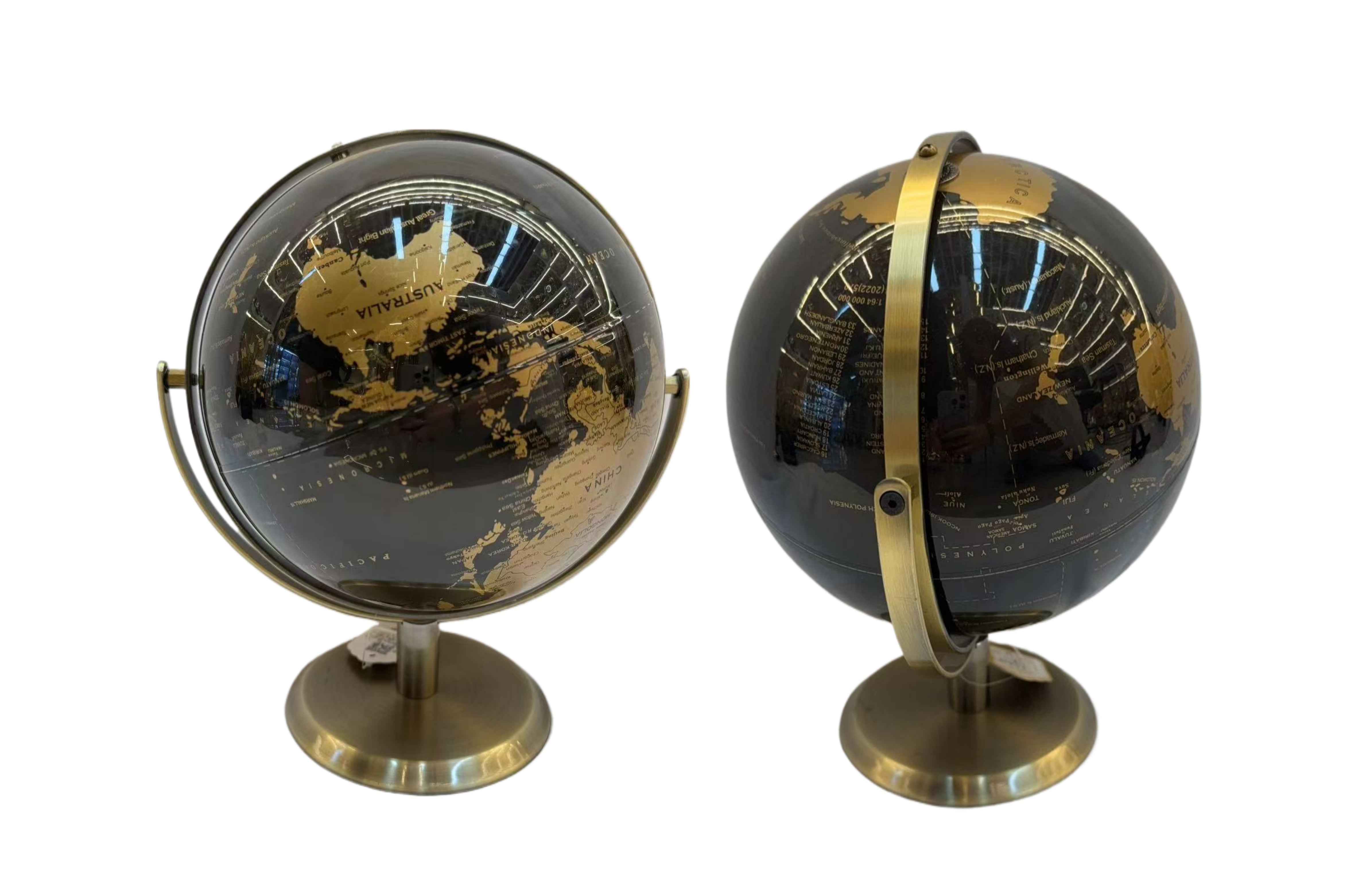 The Vintage Table World Globe from Elegant Collections captures a sense of timeless discovery with a bold black and gold palette. Blending classical sophistication with contemporary edge, this elegant globe is more than just a décor piece—it’s a tribute to the spirit of exploration.